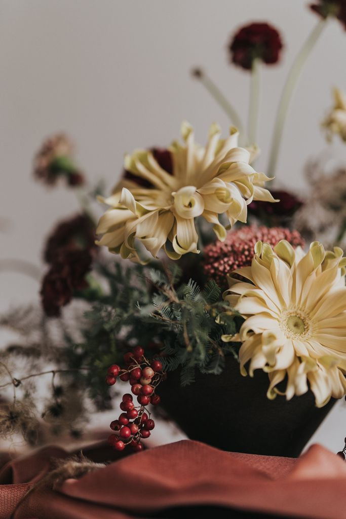It was a pleasure to work on this culinary shooting photographed by Delphine Saliou and styled by Lucie Herrmann. I even forgot my principles and used gerberas in my design! Never say never…