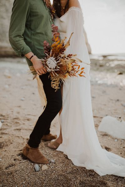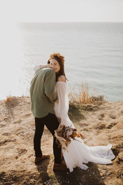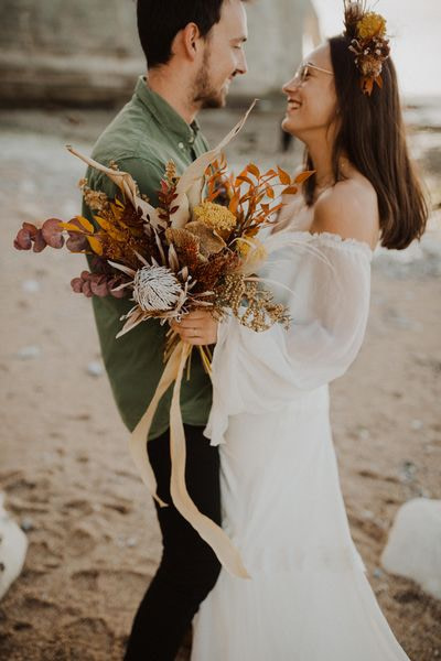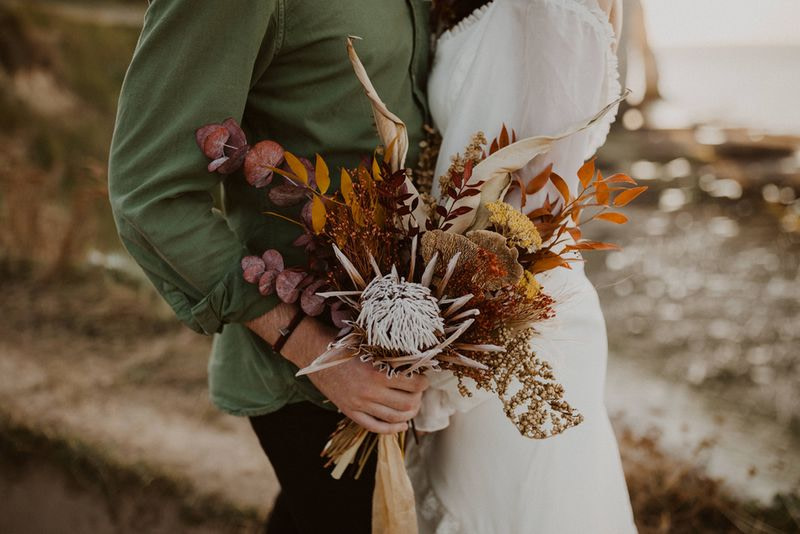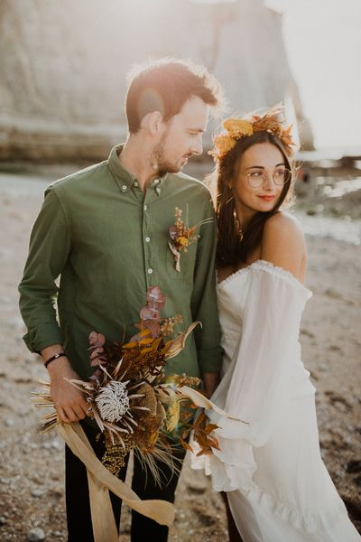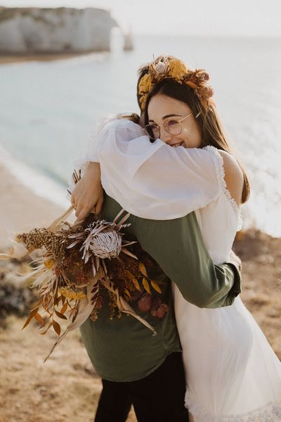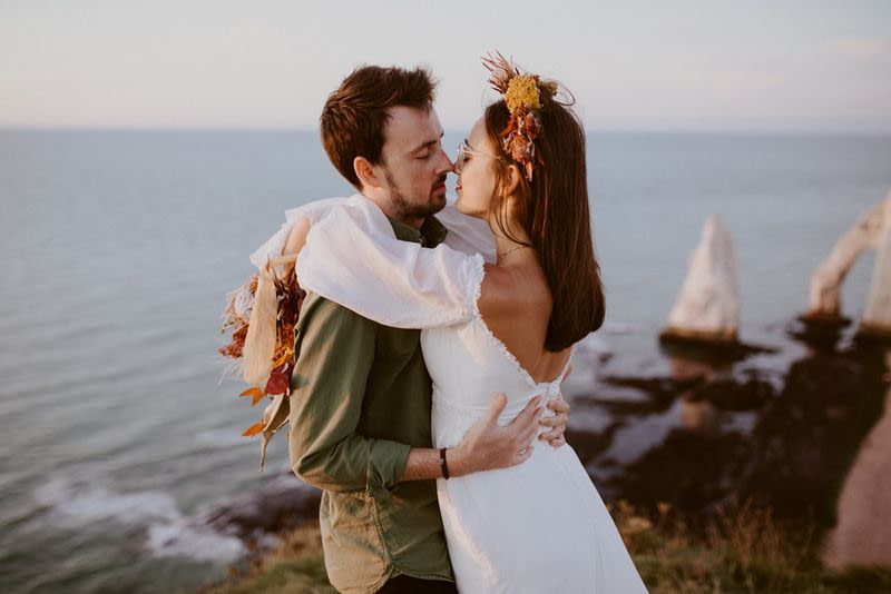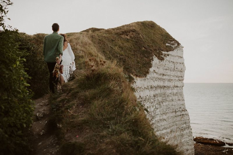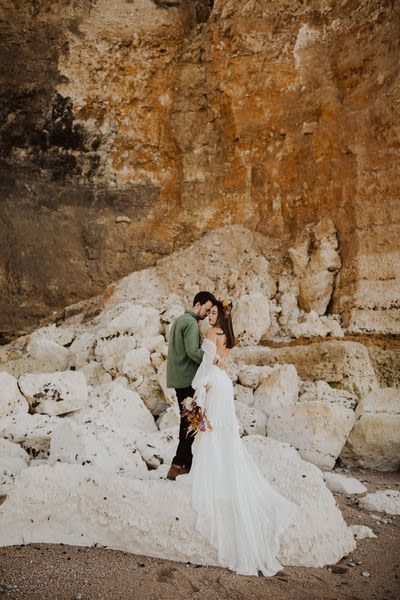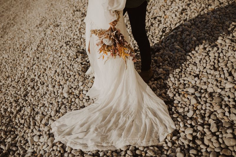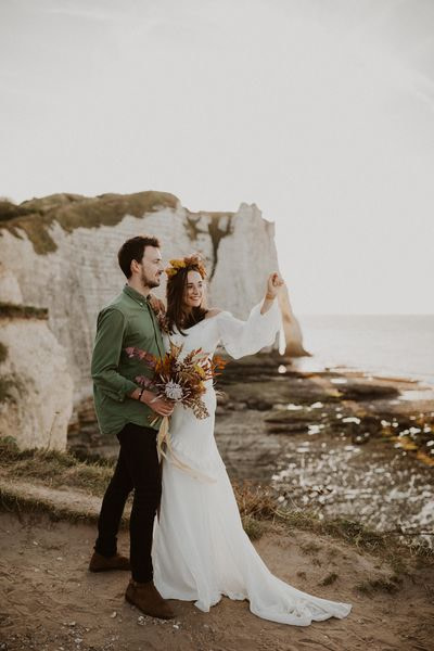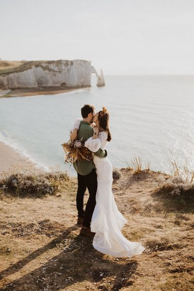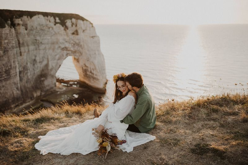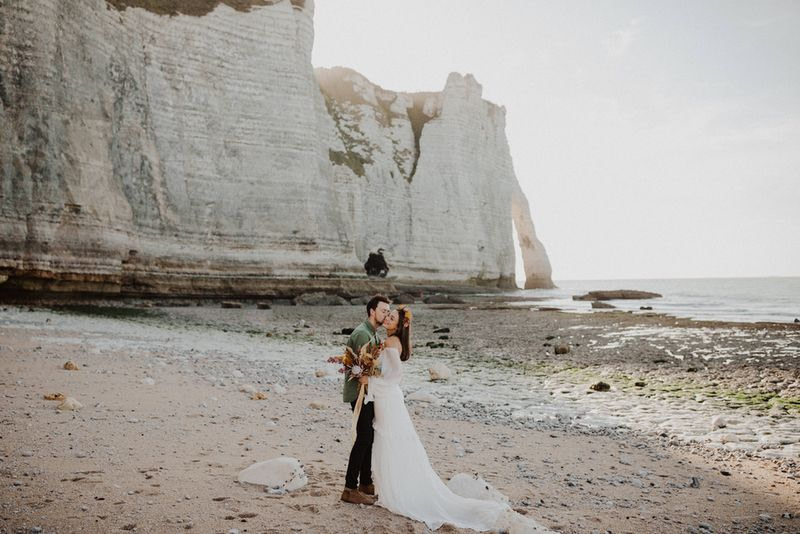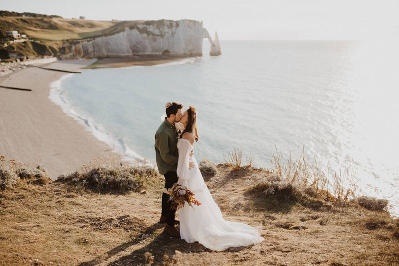 Unique Etretat landscapes, surreal lights, two talented photographers… so many reasons why this elopement wedding inspiration shooting is so beautiful!