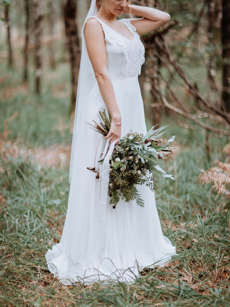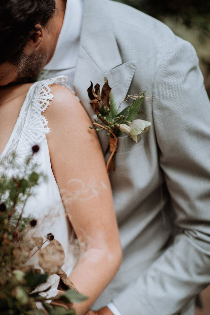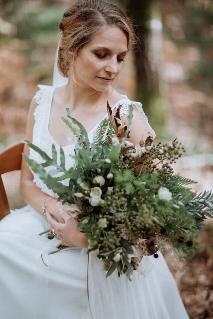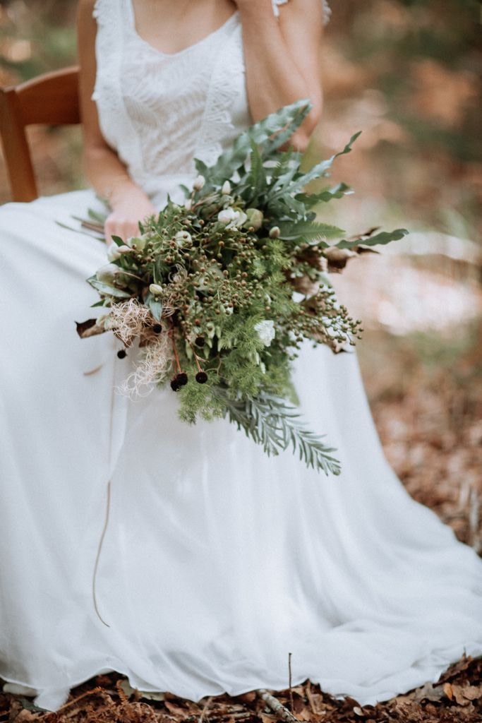 For the arch as well as the bridal bouquet, I played with textures in shades of green and soft brown.