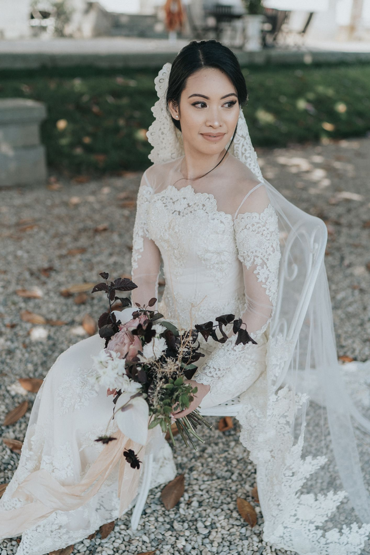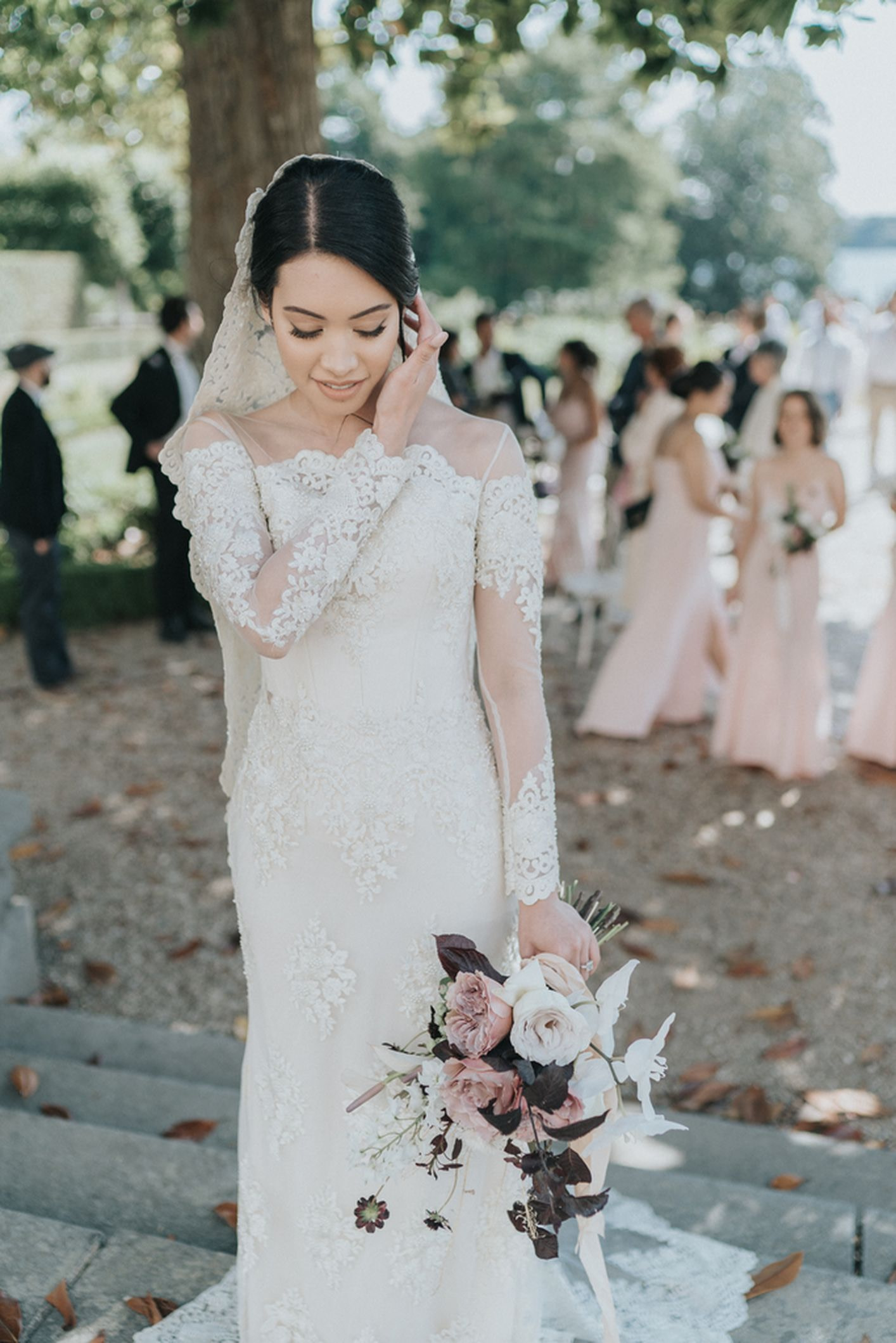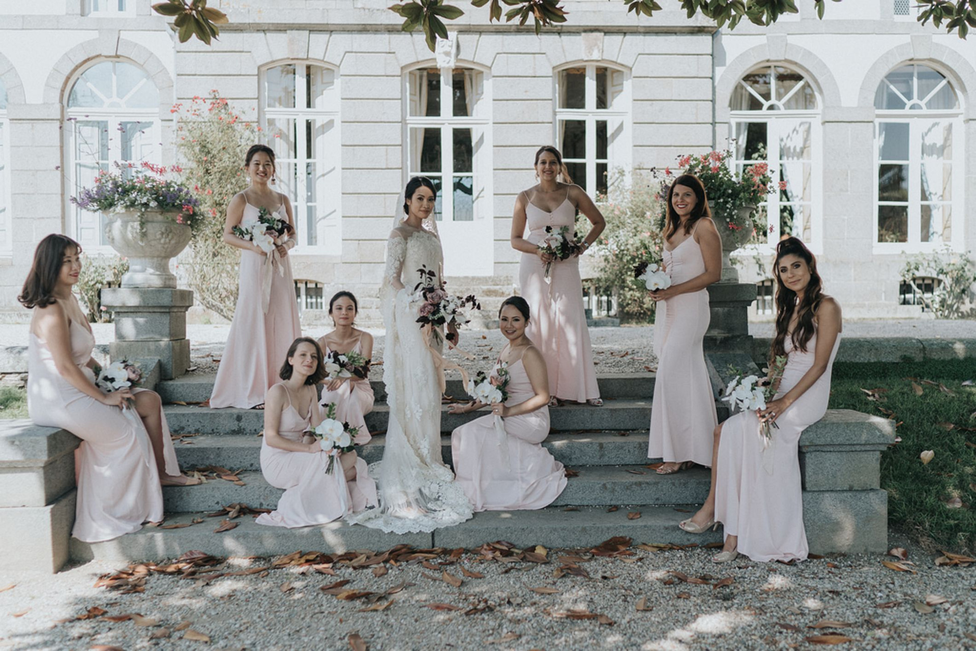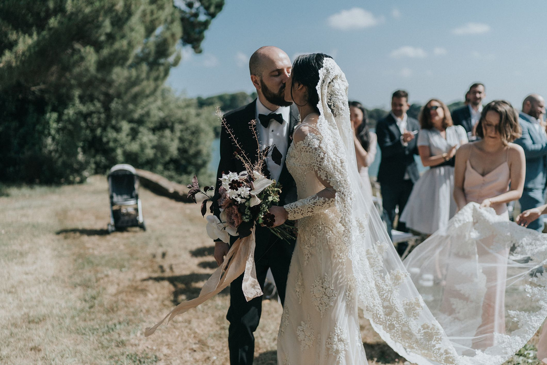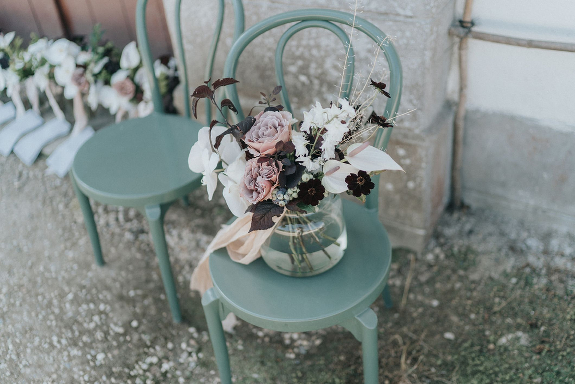 I was really looking forward to Marsha and Alexis’ wedding this season because their choice of colors and flowers has been really inspiring for me. An elegant and modern color palette mixing blush and dark tones, and bold flowers: phalaenopsis orchids, roses, anthuriums… The venue, Domaine du Montmarin, was really beautiful and unique and the ceremony took place right next to water. And what about this bride, isn’t she beautiful?!