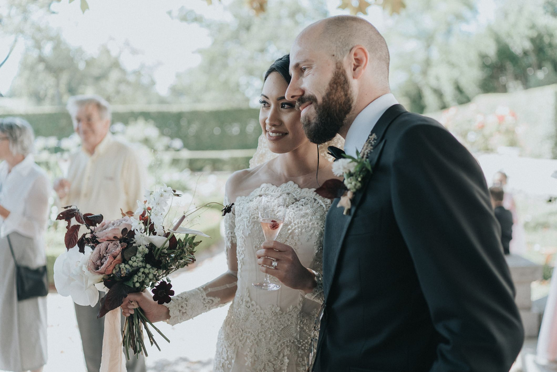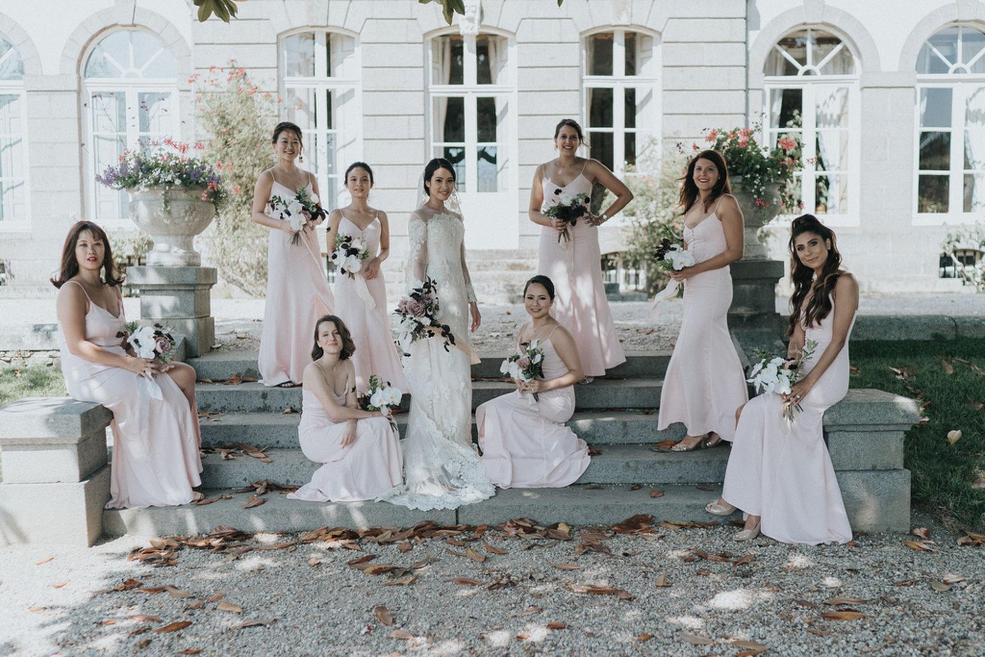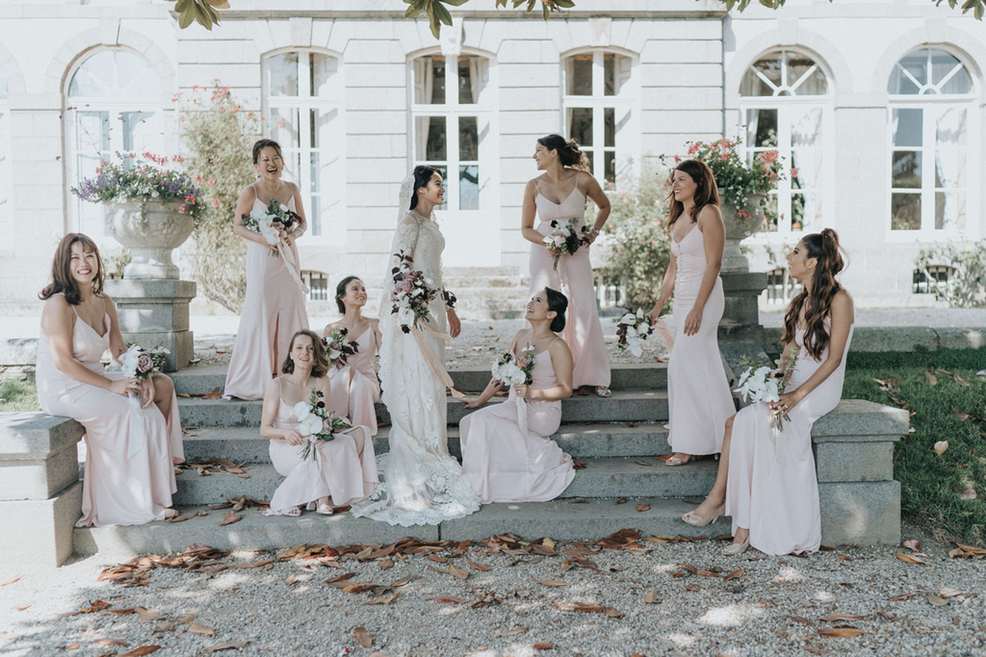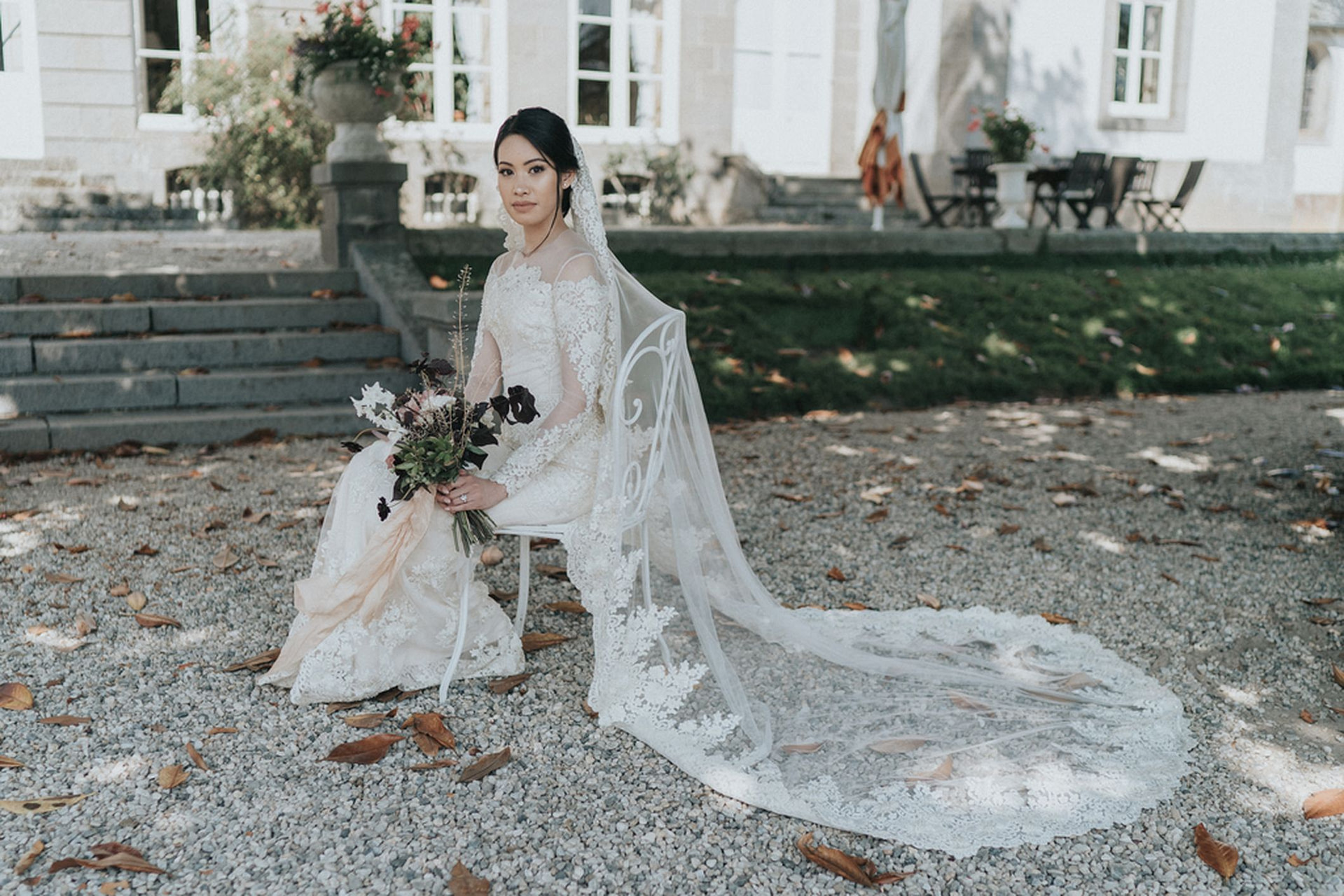 I was really looking forward to Marsha and Alexis’ wedding this season because their choice of colors and flowers has been really inspiring for me. An elegant and modern color palette mixing blush and dark tones, and bold flowers: phalaenopsis orchids, roses, anthuriums… The venue, Domaine du Montmarin, was really beautiful and unique and the ceremony took place right next to water. And what about this bride, isn’t she beautiful?!