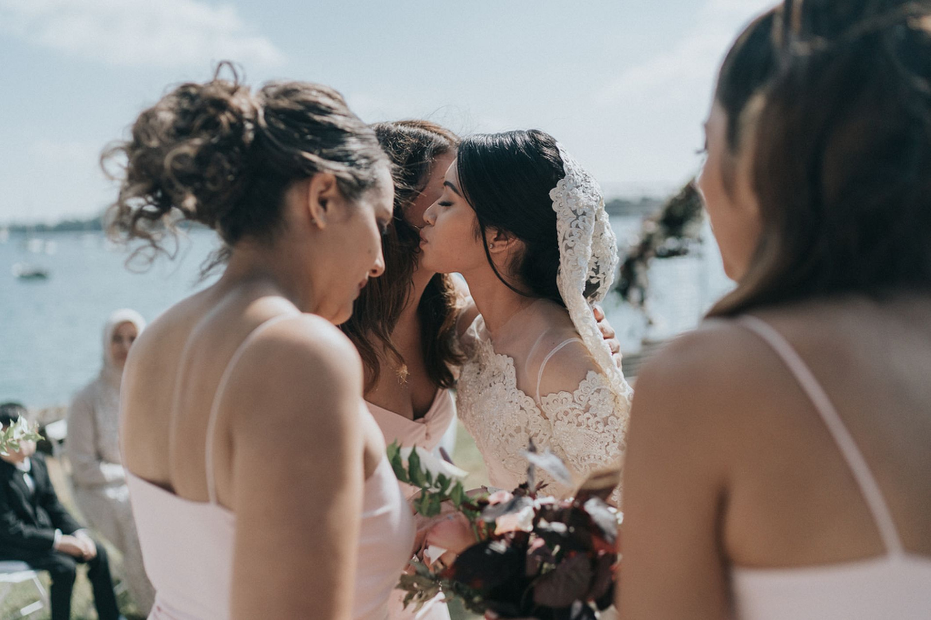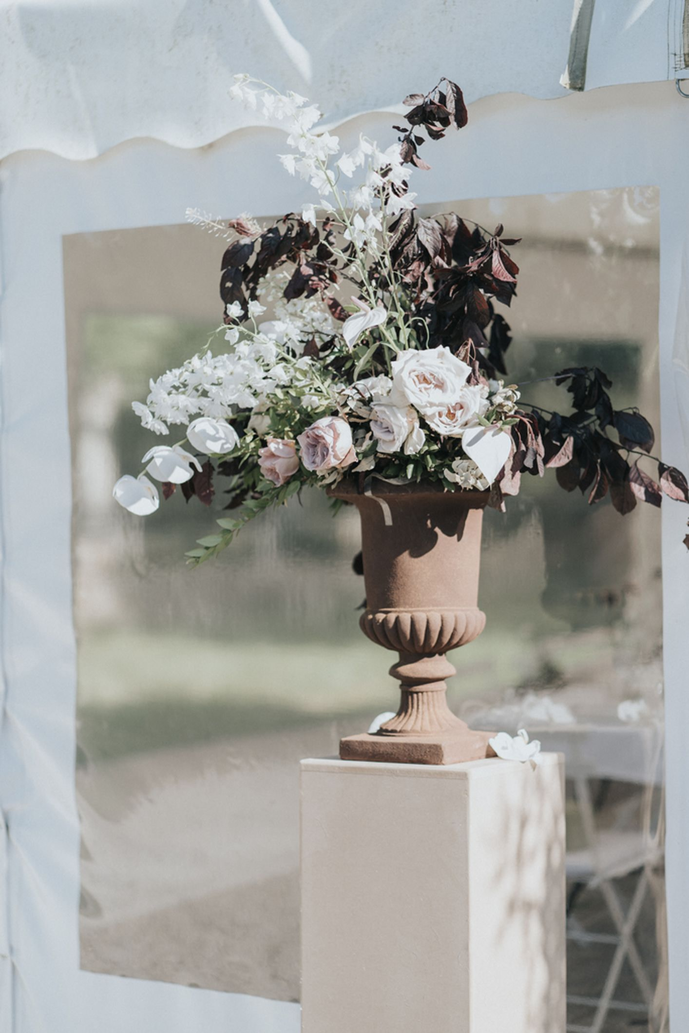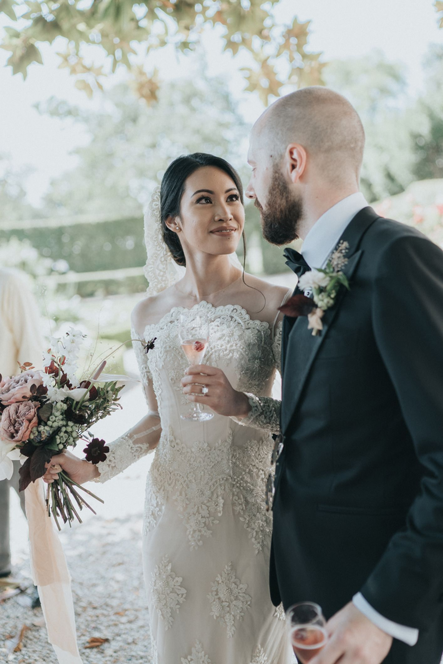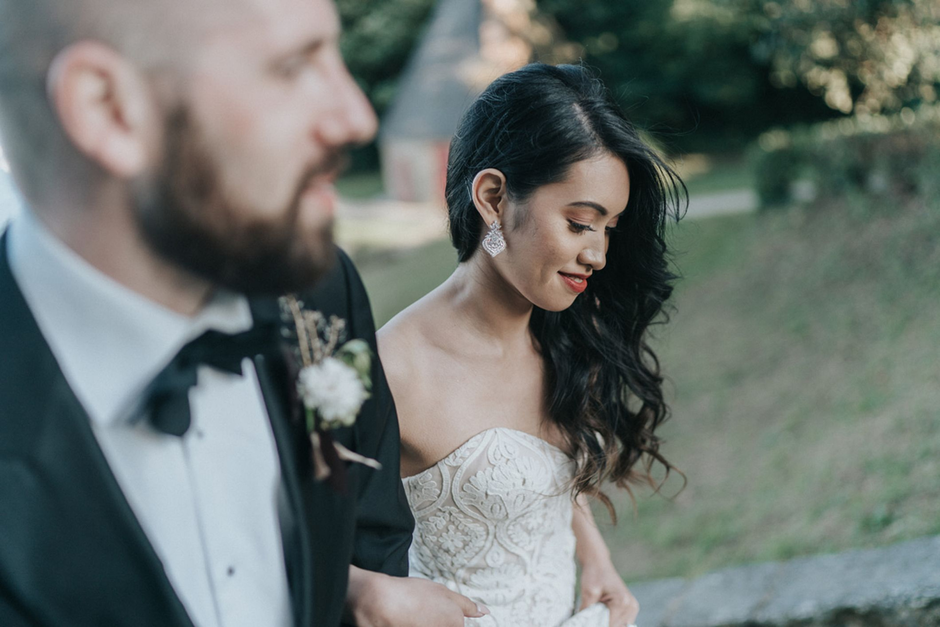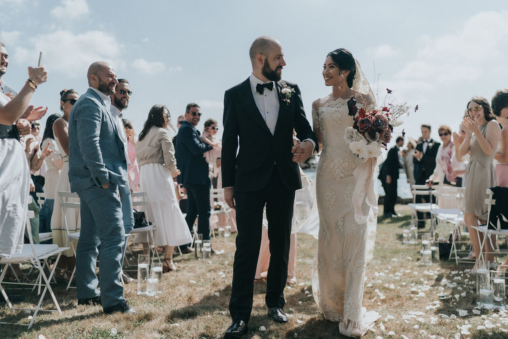 I was really looking forward to Marsha and Alexis’ wedding this season because their choice of colors and flowers has been really inspiring for me. An elegant and modern color palette mixing blush and dark tones, and bold flowers: phalaenopsis orchids, roses, anthuriums… The venue, Domaine du Montmarin, was really beautiful and unique and the ceremony took place right next to water. And what about this bride, isn’t she beautiful?!