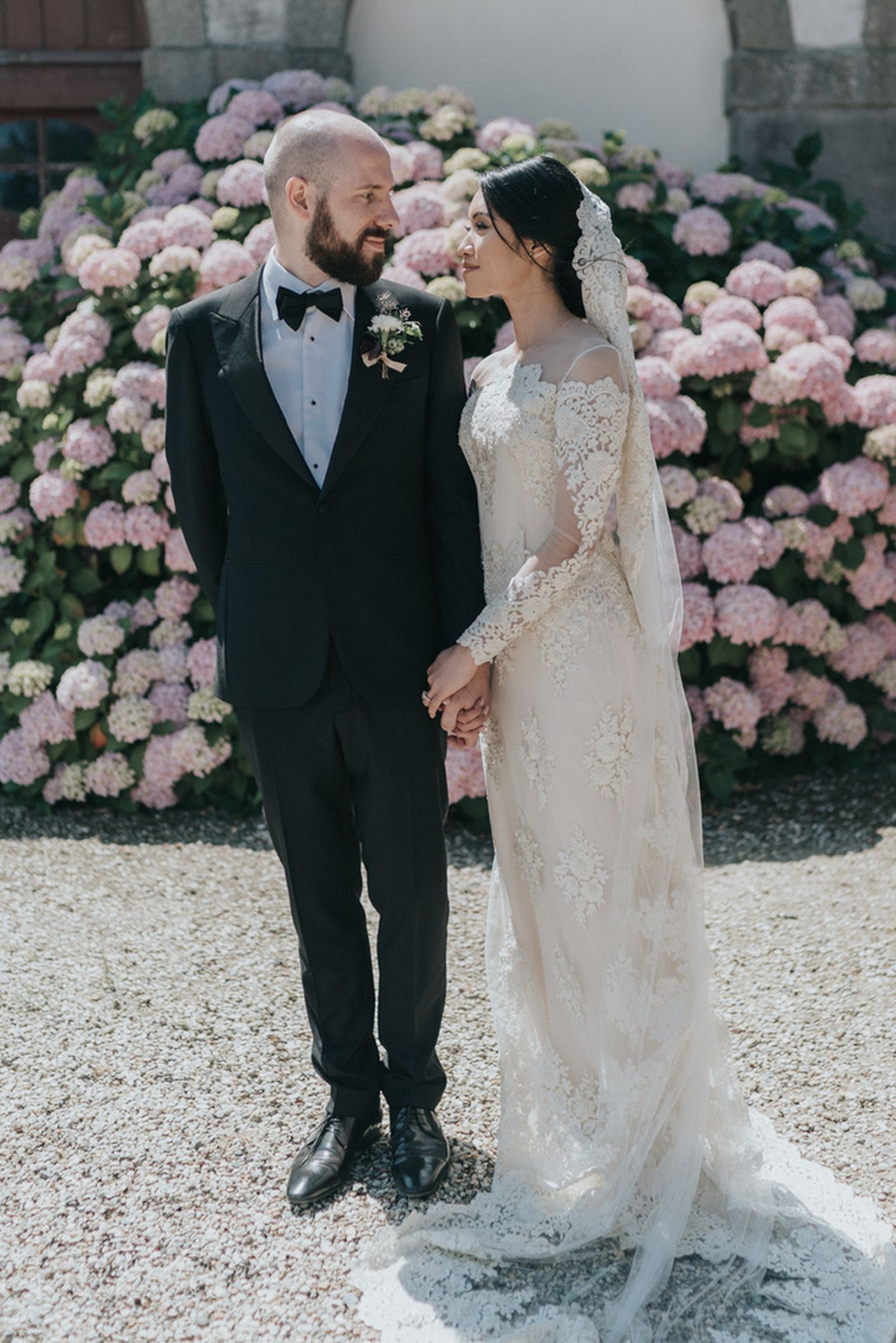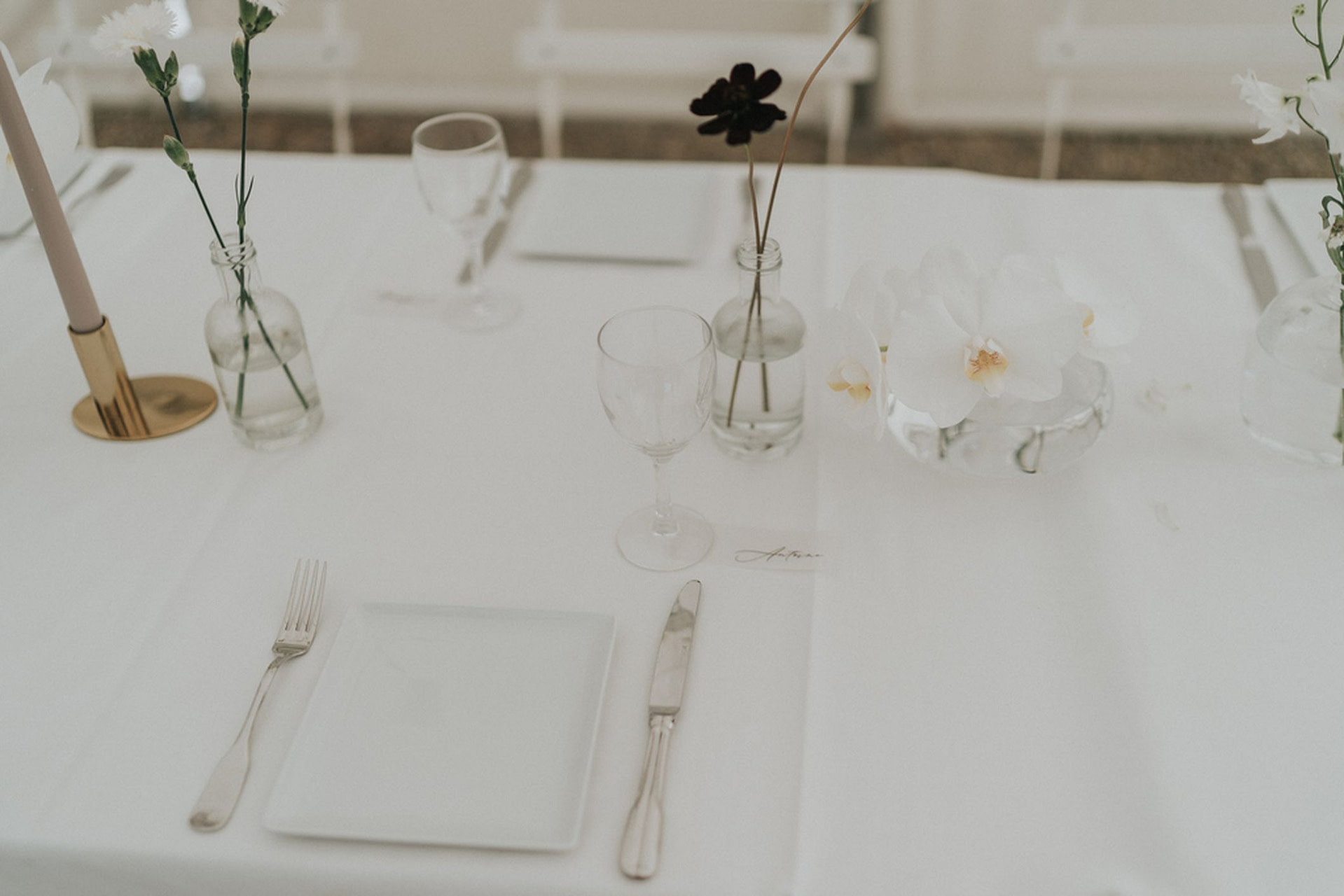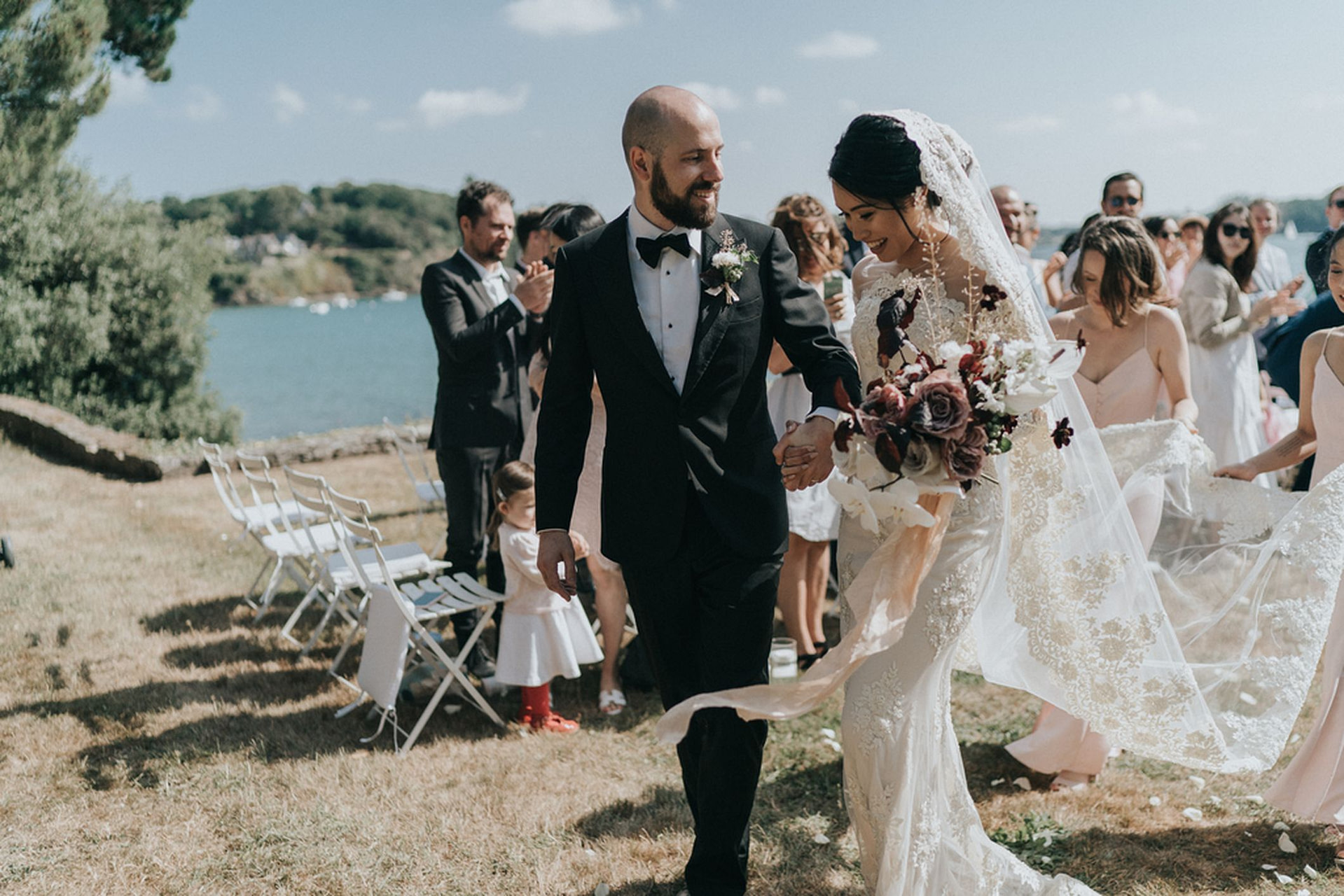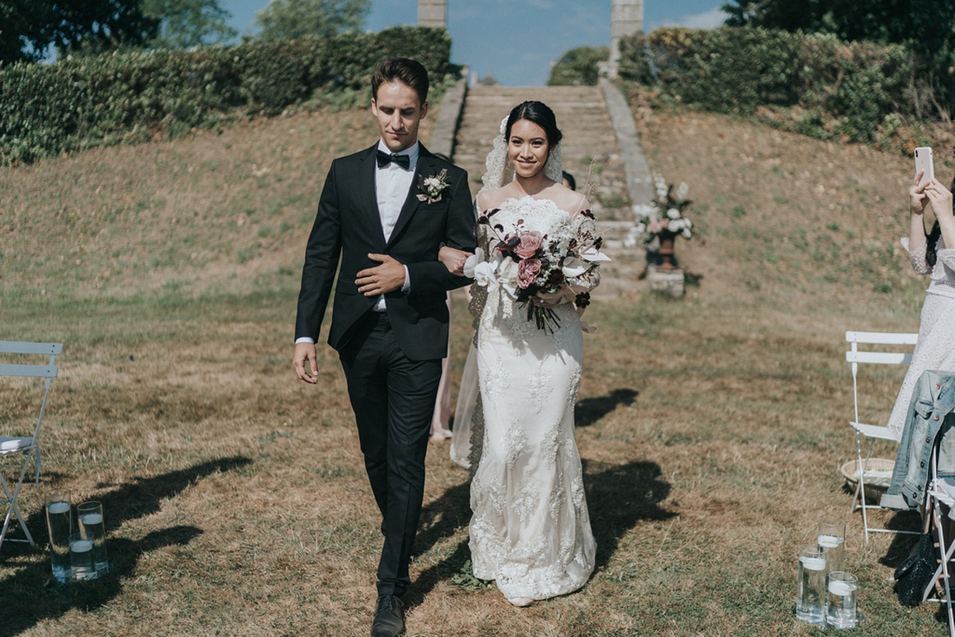 I was really looking forward to Marsha and Alexis’ wedding this season because their choice of colors and flowers has been really inspiring for me. An elegant and modern color palette mixing blush and dark tones, and bold flowers: phalaenopsis orchids, roses, anthuriums… The venue, Domaine du Montmarin, was really beautiful and unique and the ceremony took place right next to water. And what about this bride, isn’t she beautiful?!