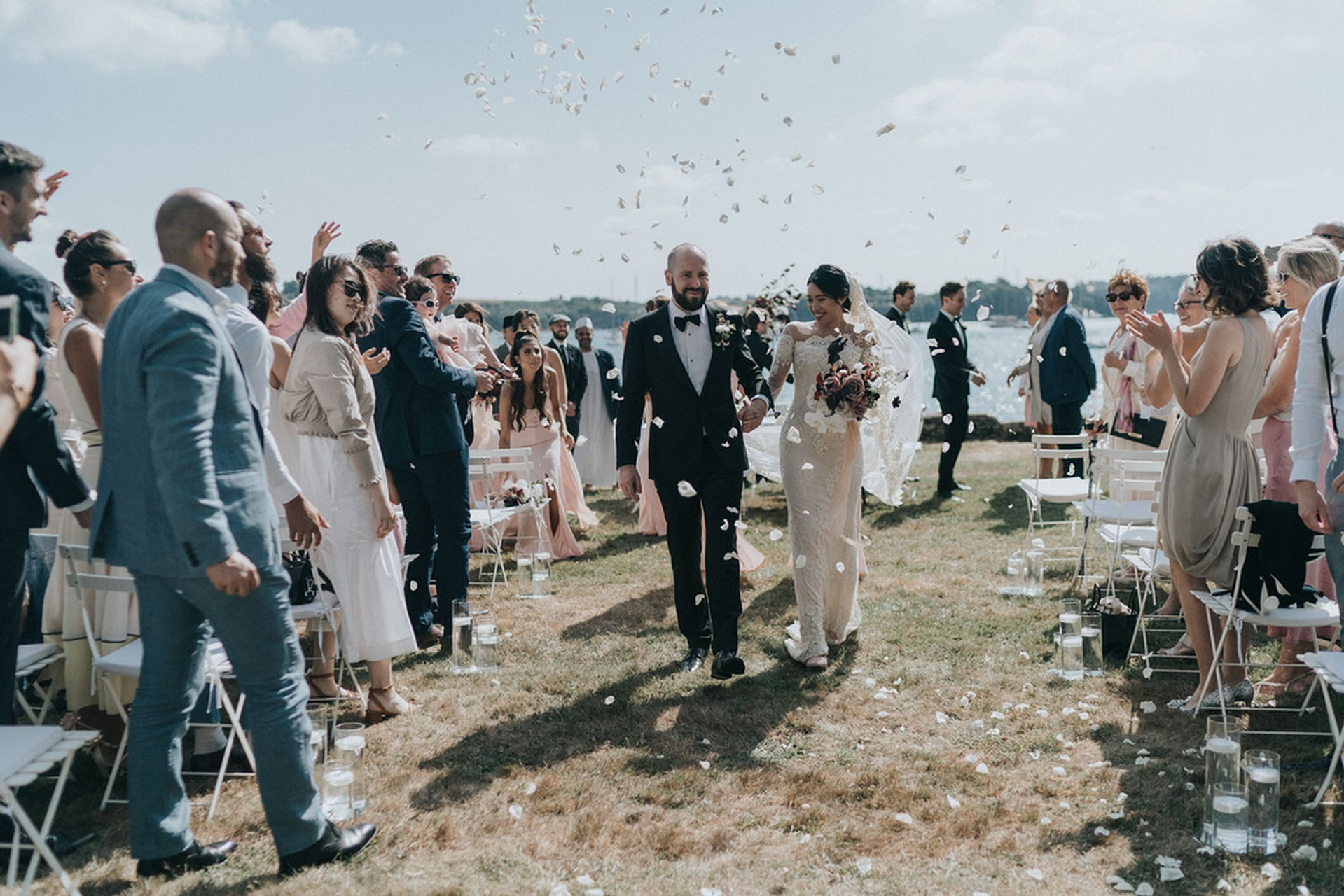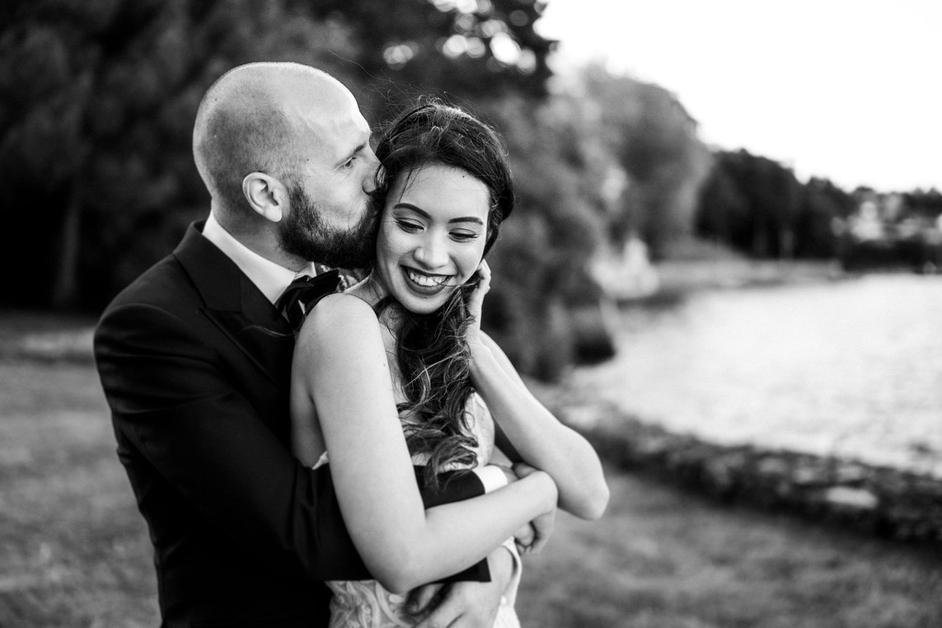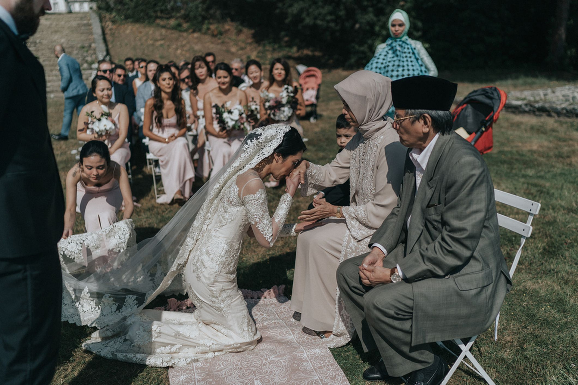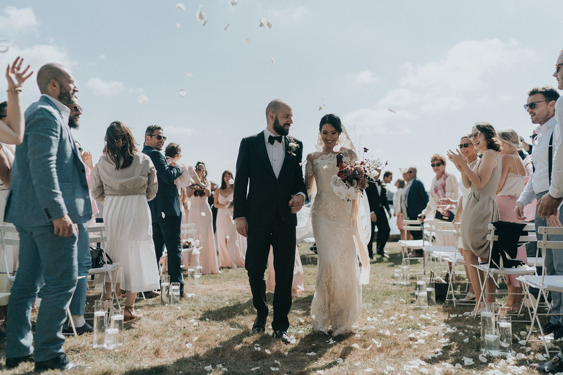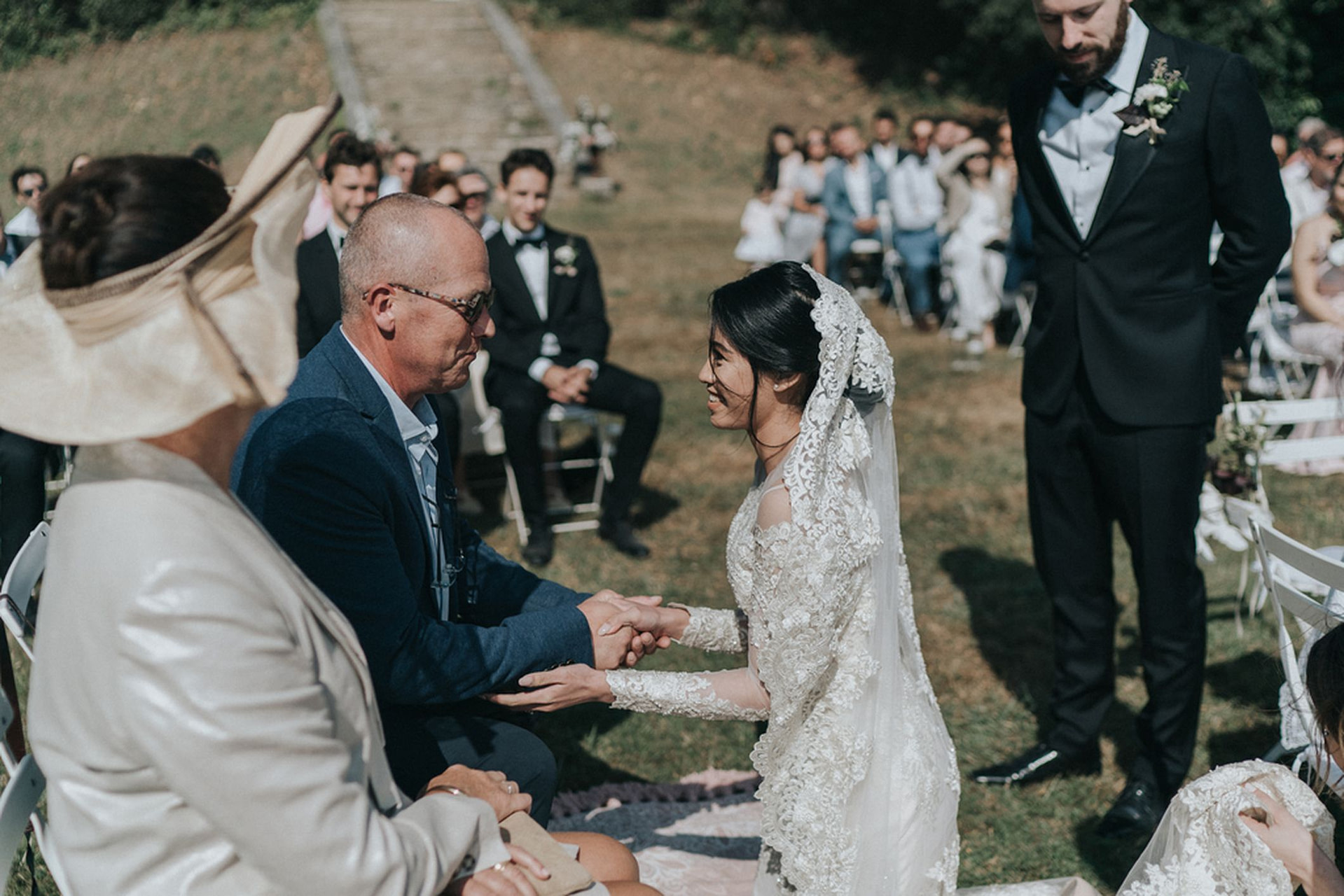 I was really looking forward to Marsha and Alexis’ wedding this season because their choice of colors and flowers has been really inspiring for me. An elegant and modern color palette mixing blush and dark tones, and bold flowers: phalaenopsis orchids, roses, anthuriums… The venue, Domaine du Montmarin, was really beautiful and unique and the ceremony took place right next to water. And what about this bride, isn’t she beautiful?!