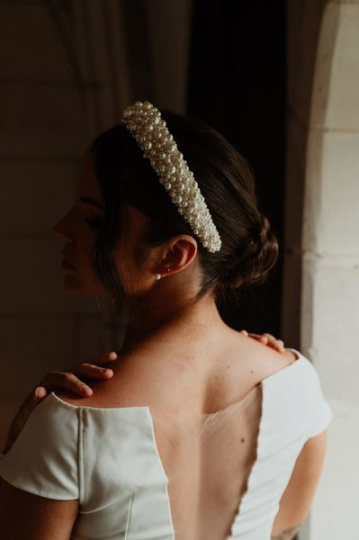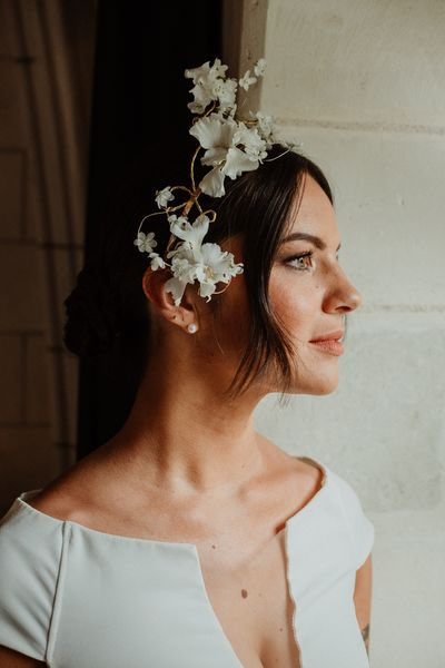 For the bridal bouquet & the hair floral jewel, I went for elegance and minimalism with delicate and simple creations.