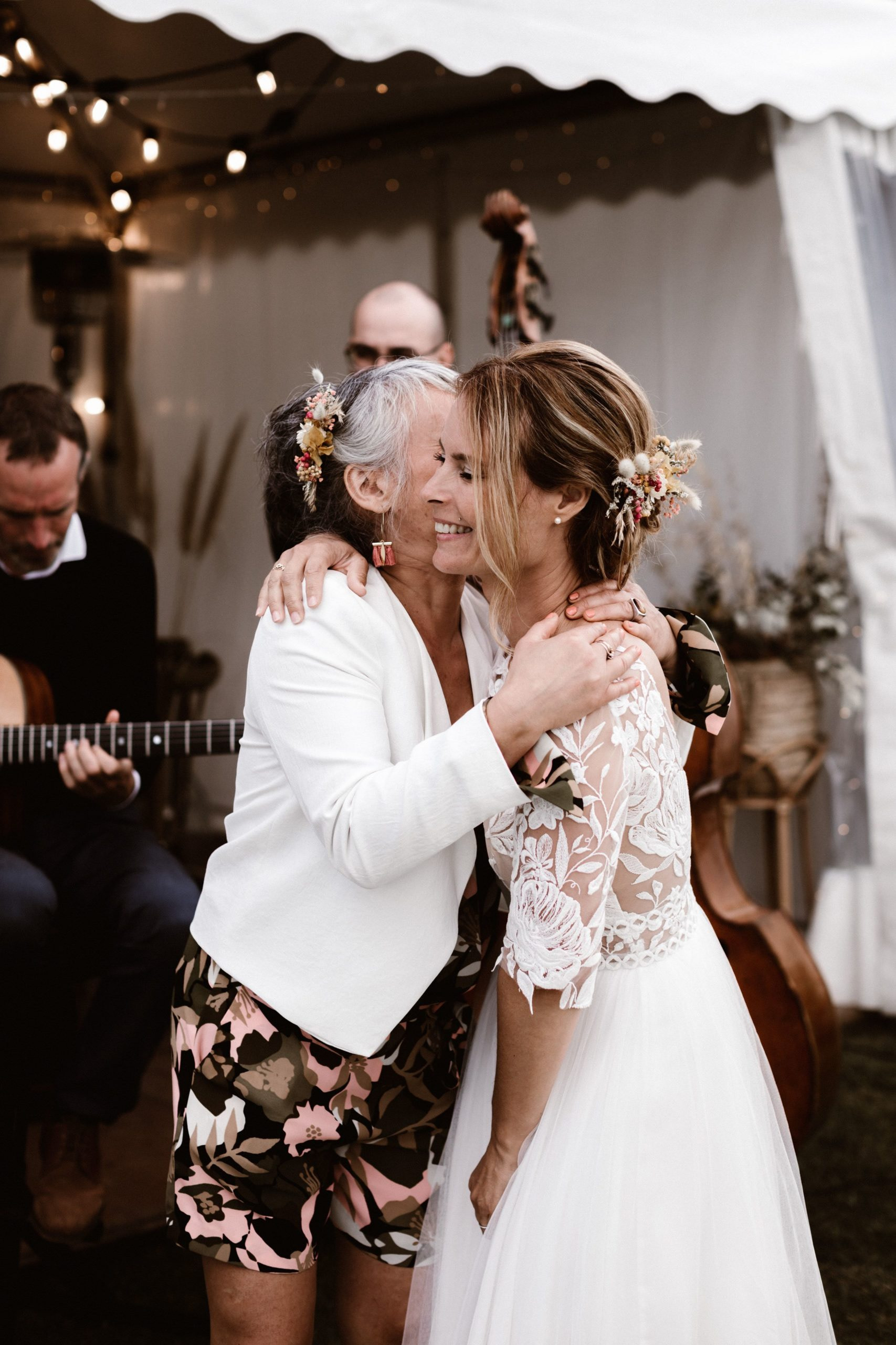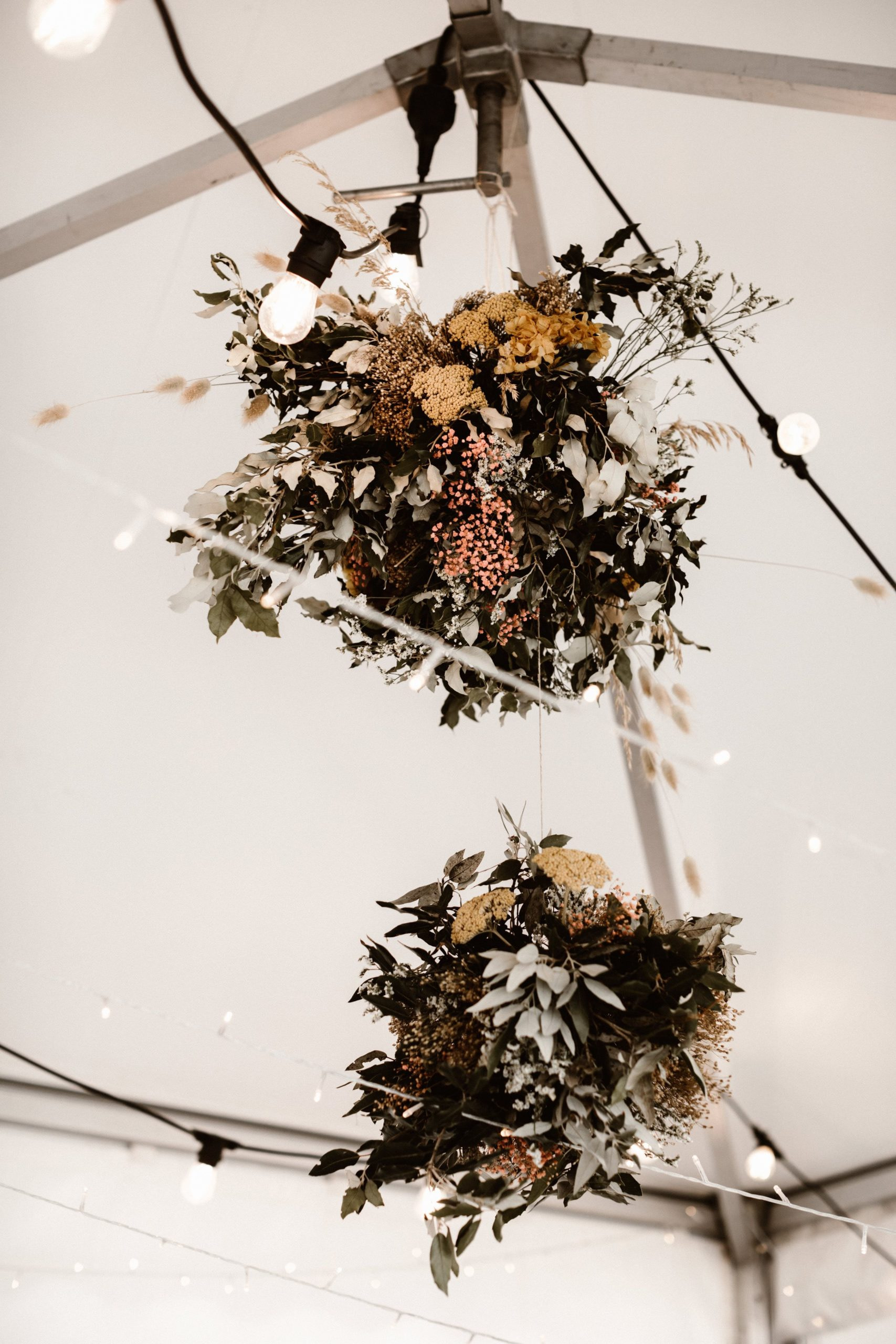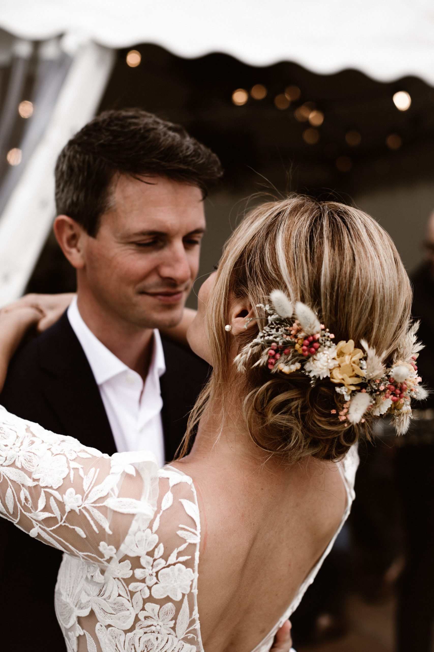 I loved creating the soft and delicate floral decoration of this intimate wedding : accessories, hanging decor for the tent, centerpieces…