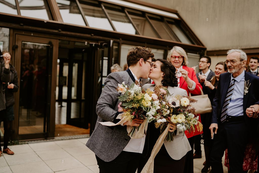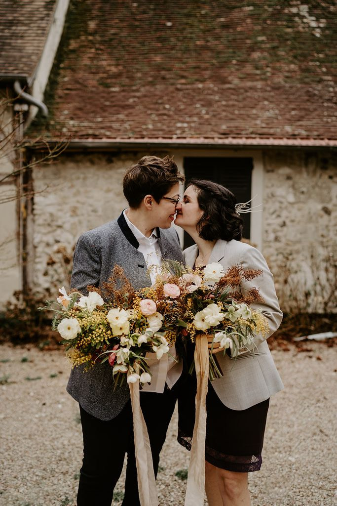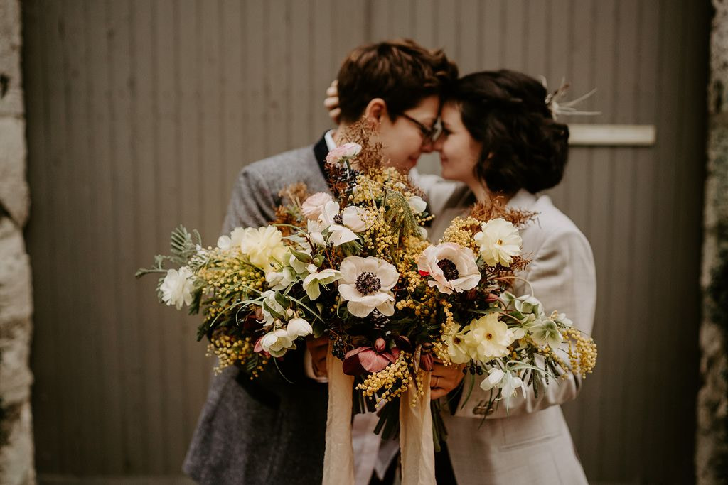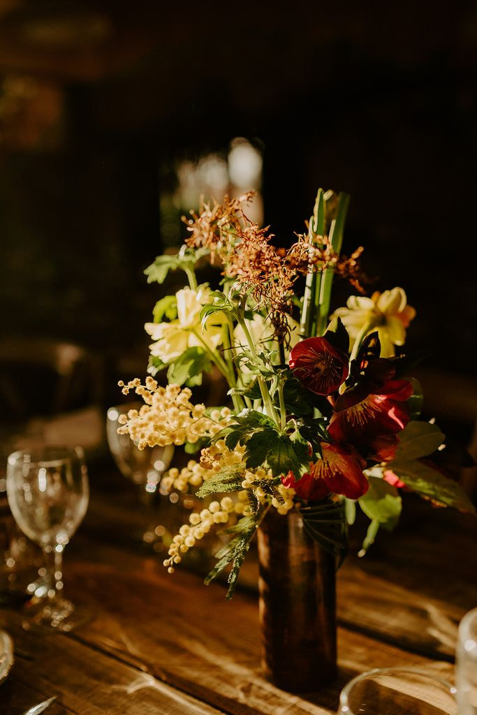 For Nina and Laurianne’s wedding, I was able to declare my love for mimosa, the bright star of winter. I used pretty winter blooms together with it: ranunculus, anemones, hellebores, narcissus, fritillaries…