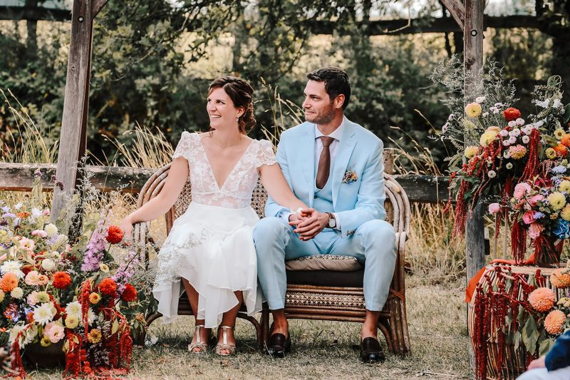 Sur place, elle a installé toutes ces réalisations avec énormément de goût. Nous et nos invités avons trouvé cela magnifique. J’ai trouvé super que Marie reste sur place afin de transférer les bouquets du lieu de la cérémonie laïque au lieu du coktail. Bref, nous avons adoré son travail! Merci Marie!