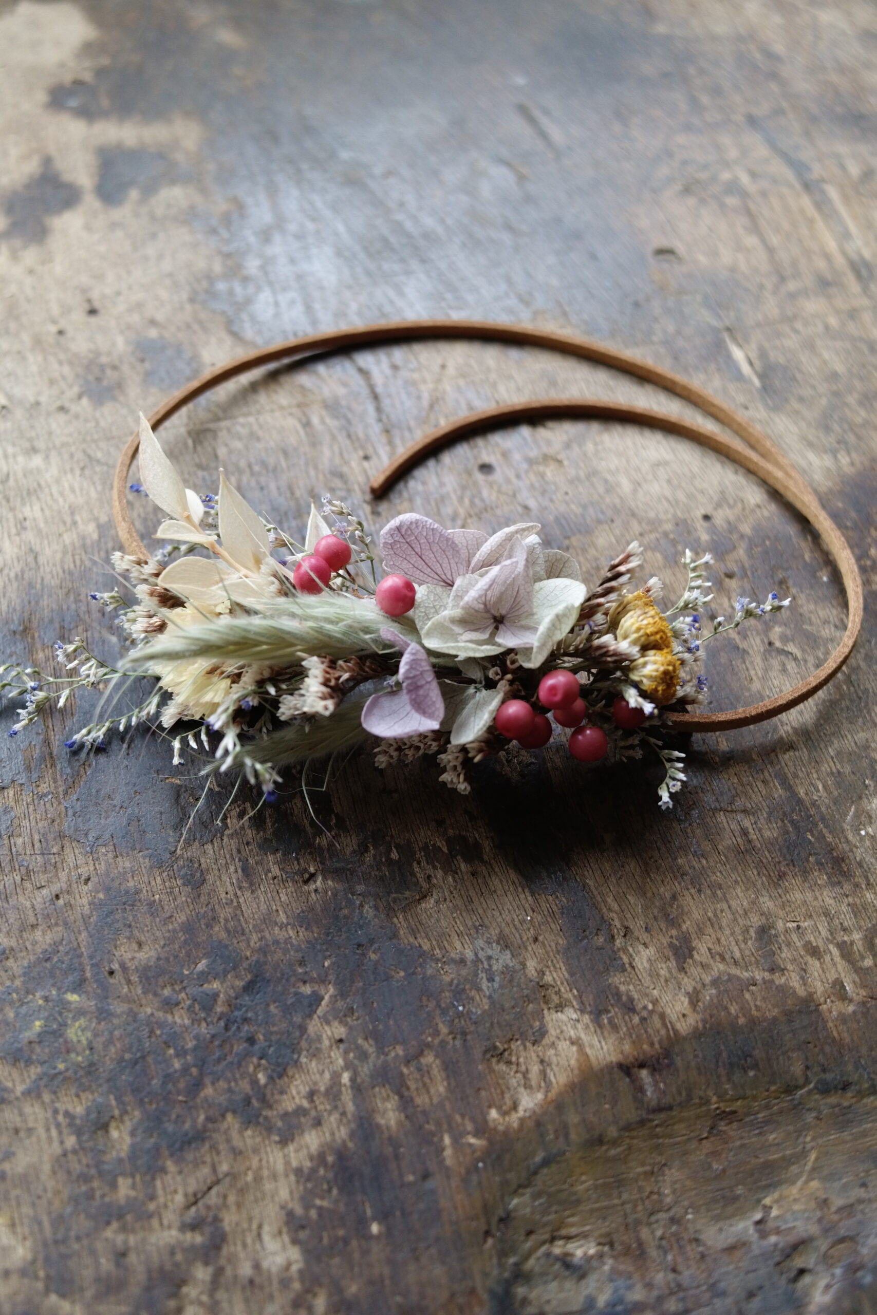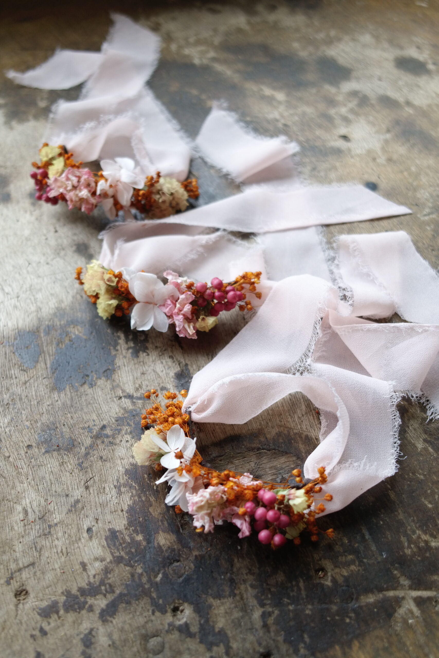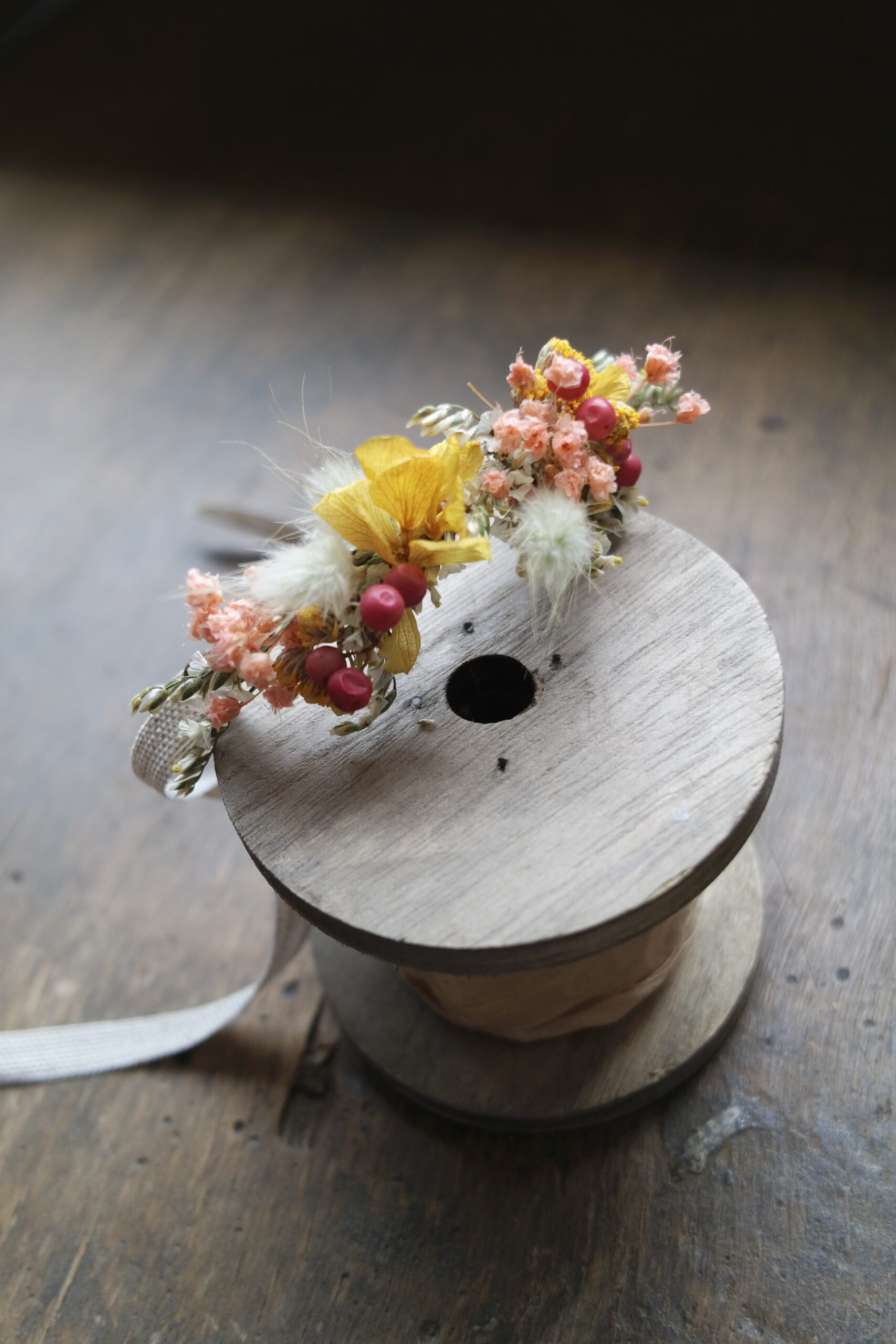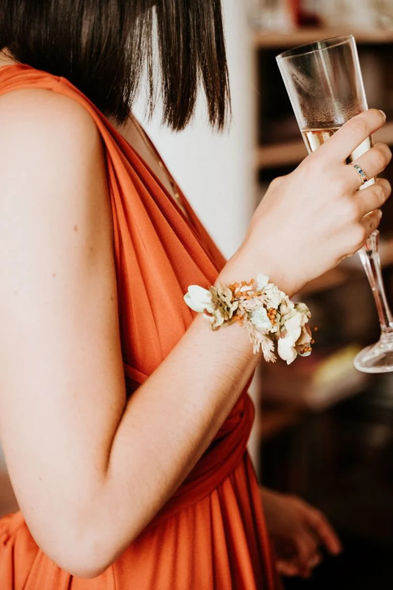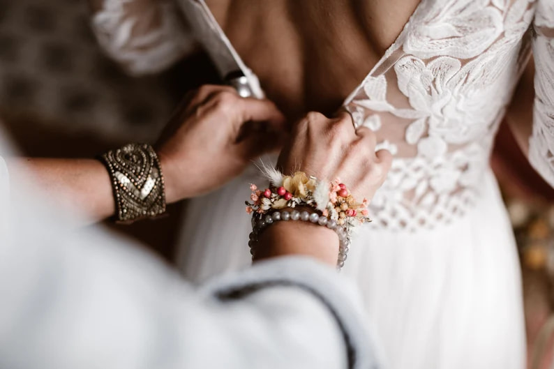 Un bracelet en fleurs séchées, léger et délicat, idéal pour un mariage ou toute occasion spéciale : une touche florale subtile et élégante.