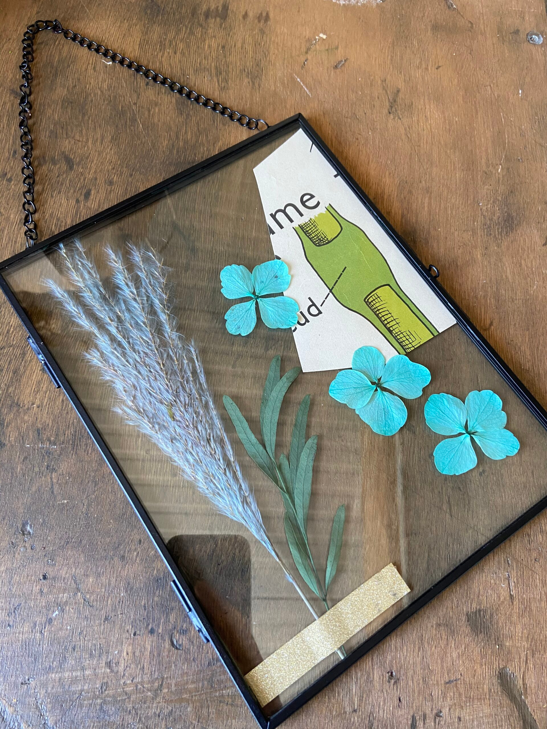 Le cadre fleuri met en scène des fleurs séchées & stabilisées dans un élégant cadre entre-deux verres pour révéler la finesse des végétaux.