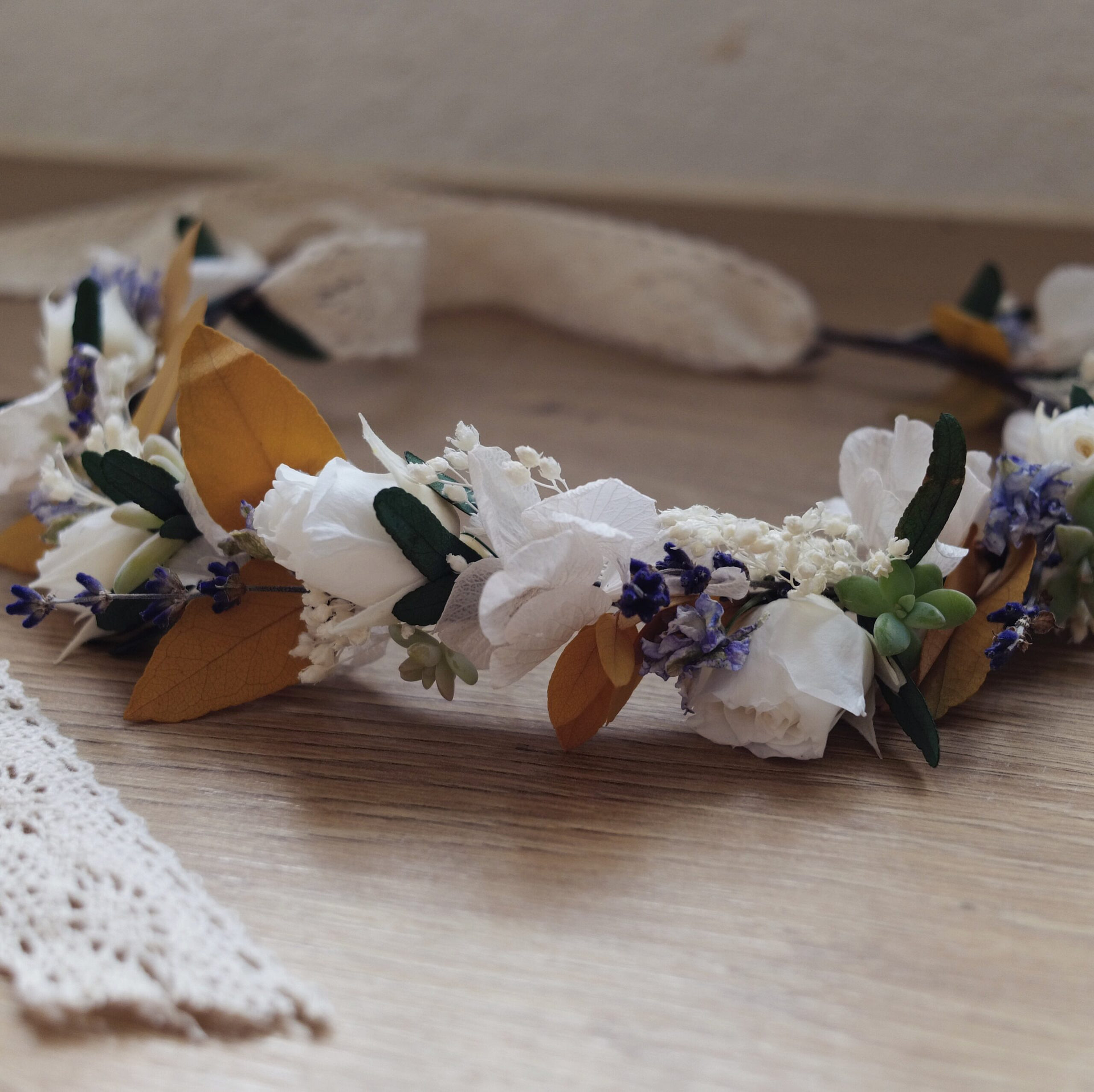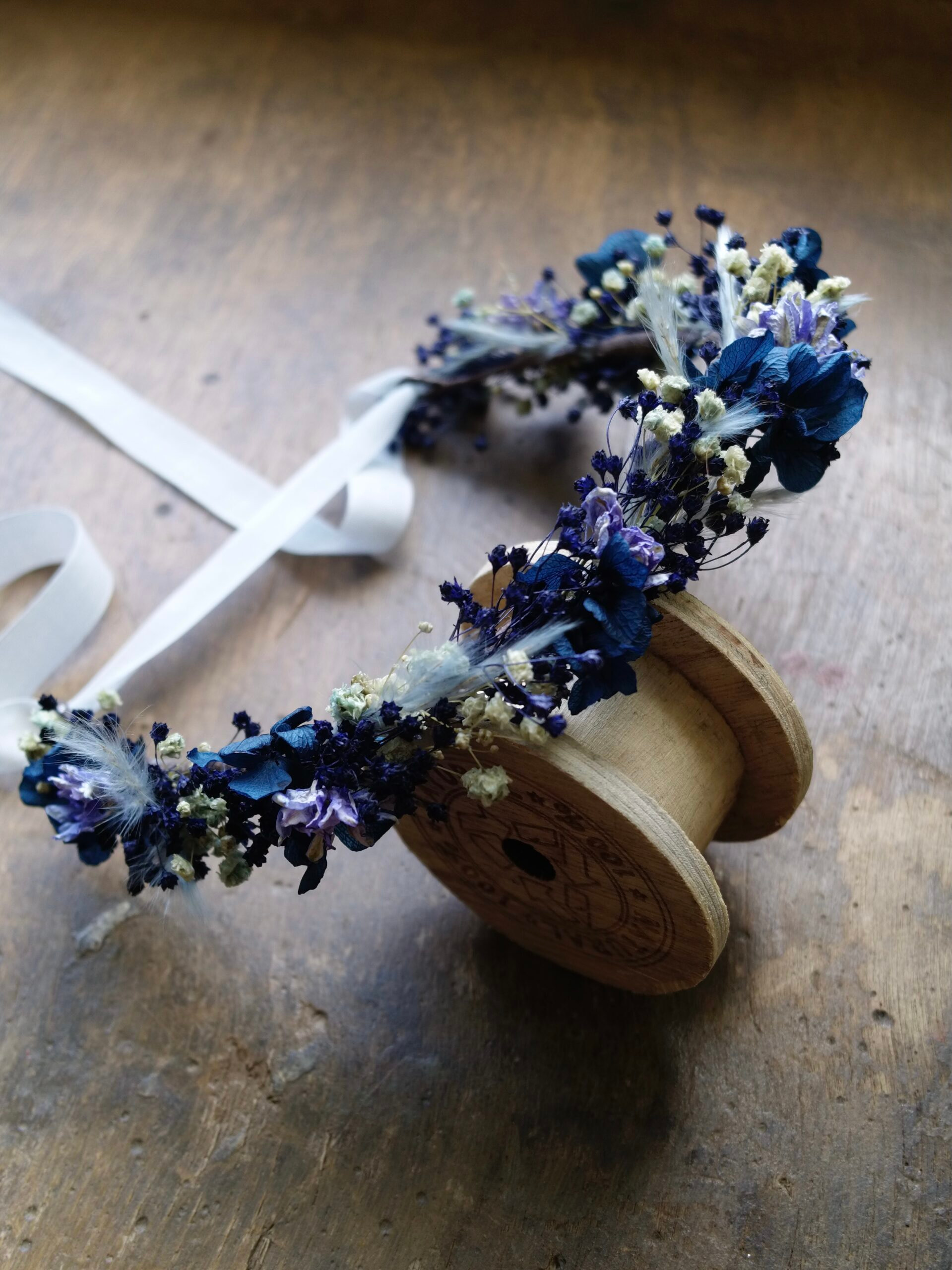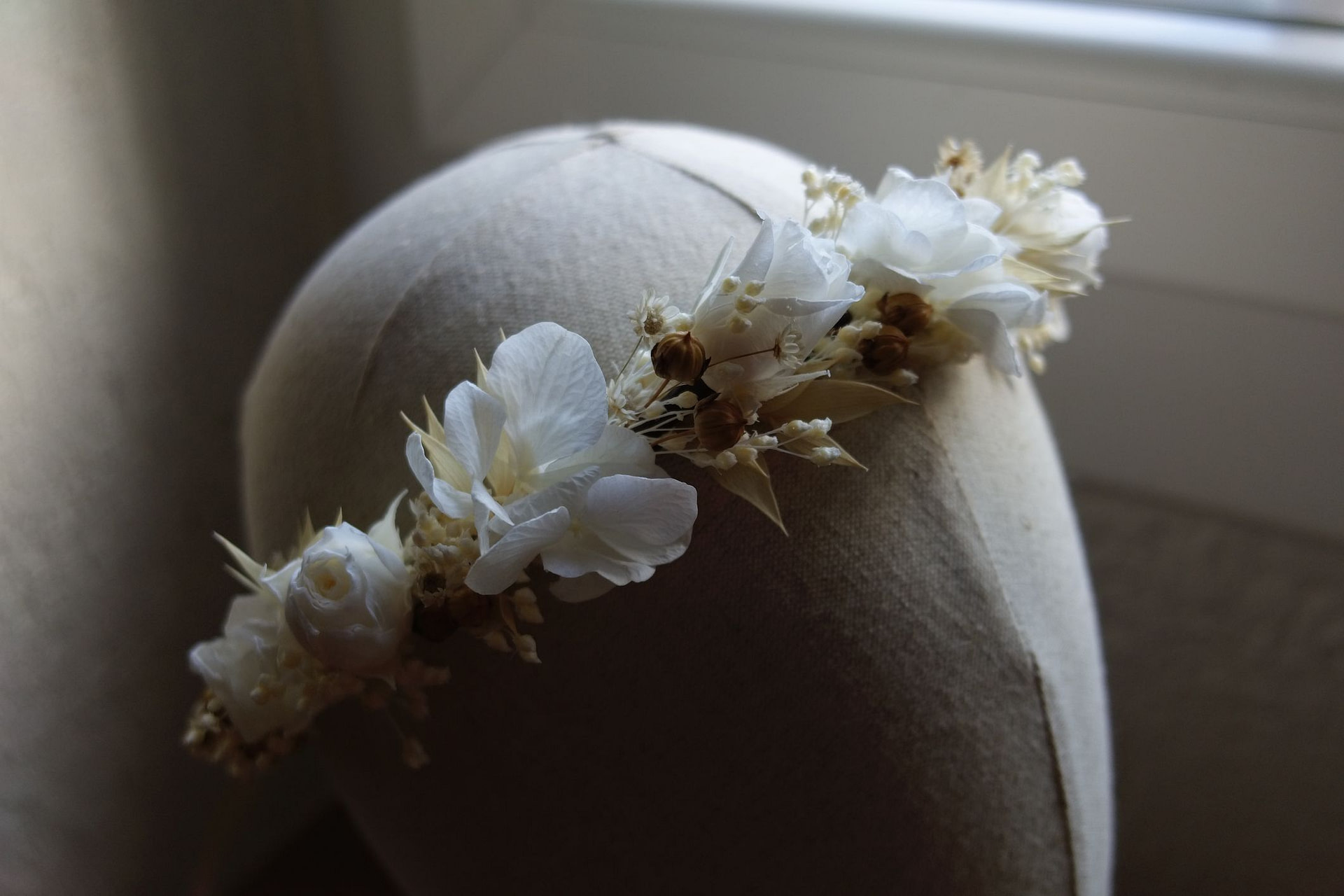 Une couronne en fleurs séchées élégante, travaillée dans un esprit naturel et raffiné. Fine ou plus volumineuse, à vous de choisir le style qui vous inspire!