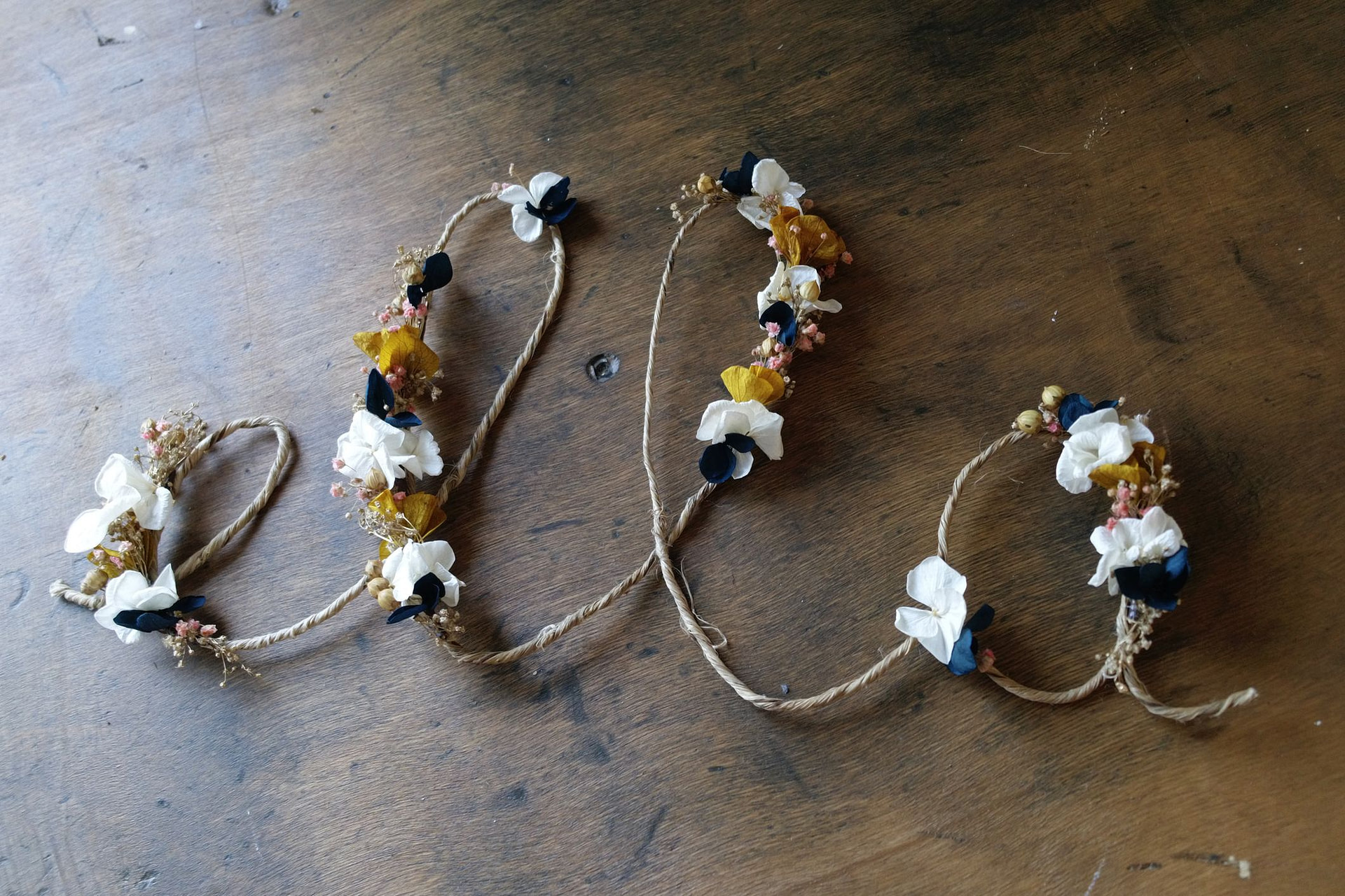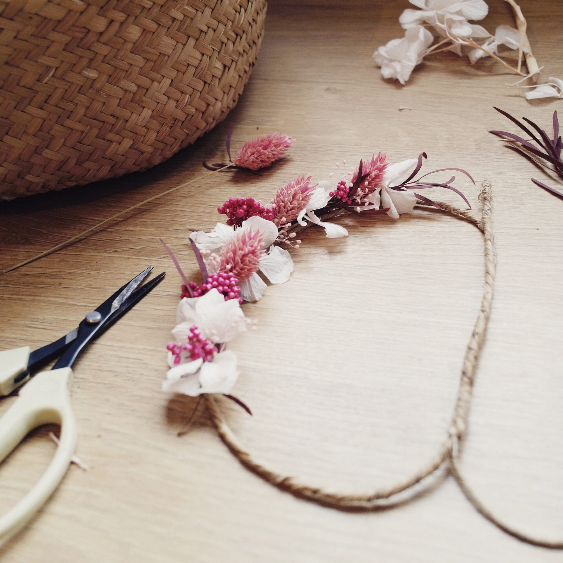 Les fleurs séchées demandent peu d’entretien. Évitez l’humidité et la lumière directe du soleil et dépoussiérez de temps en temps avec un sèche-cheveux position air froid, vos créations vous accompagneront pendant des années!