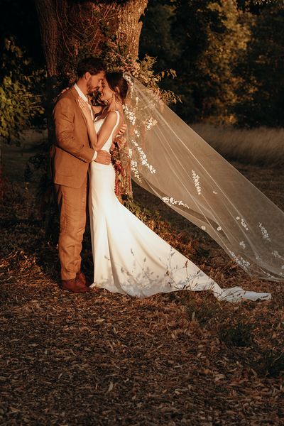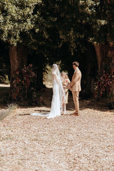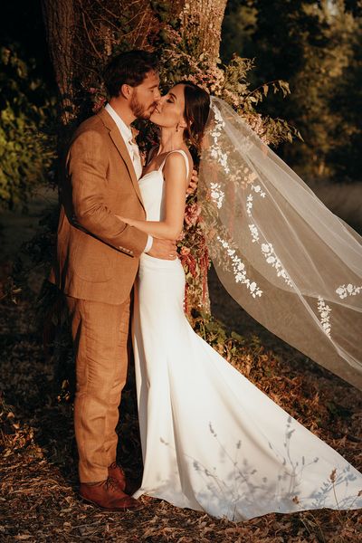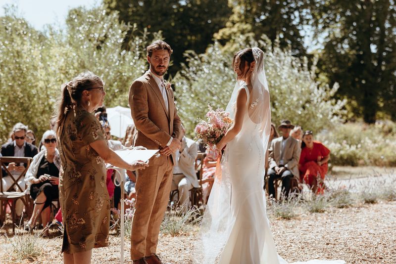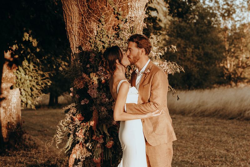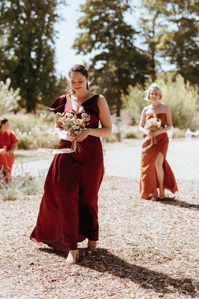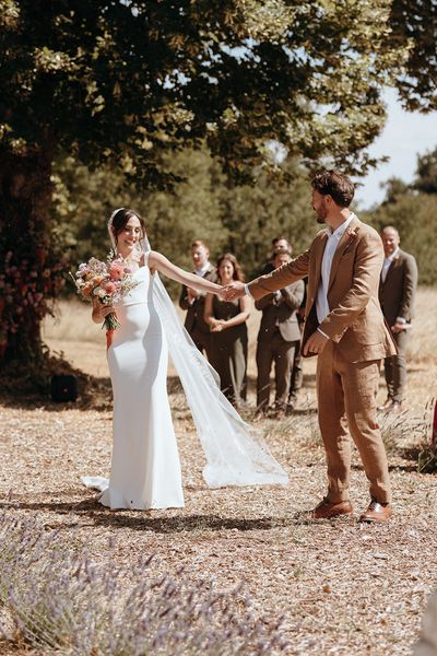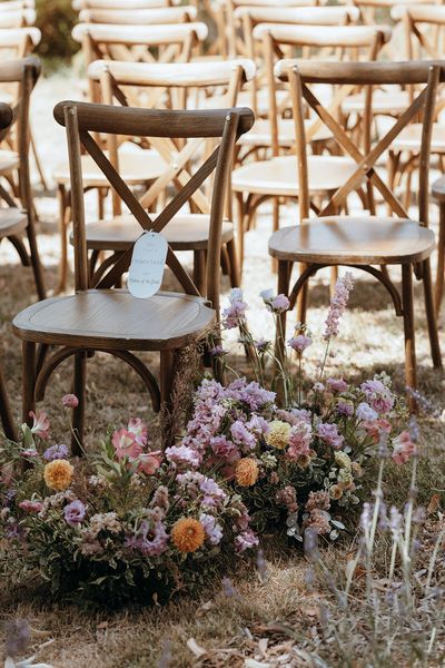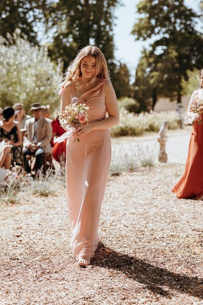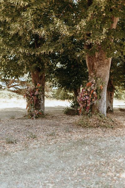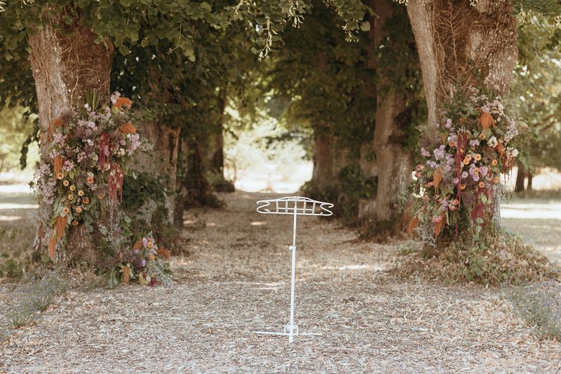 Outdoor ceremony in front of the trees alley, cocktail & dinner al fresco in the orchard… everything I love!