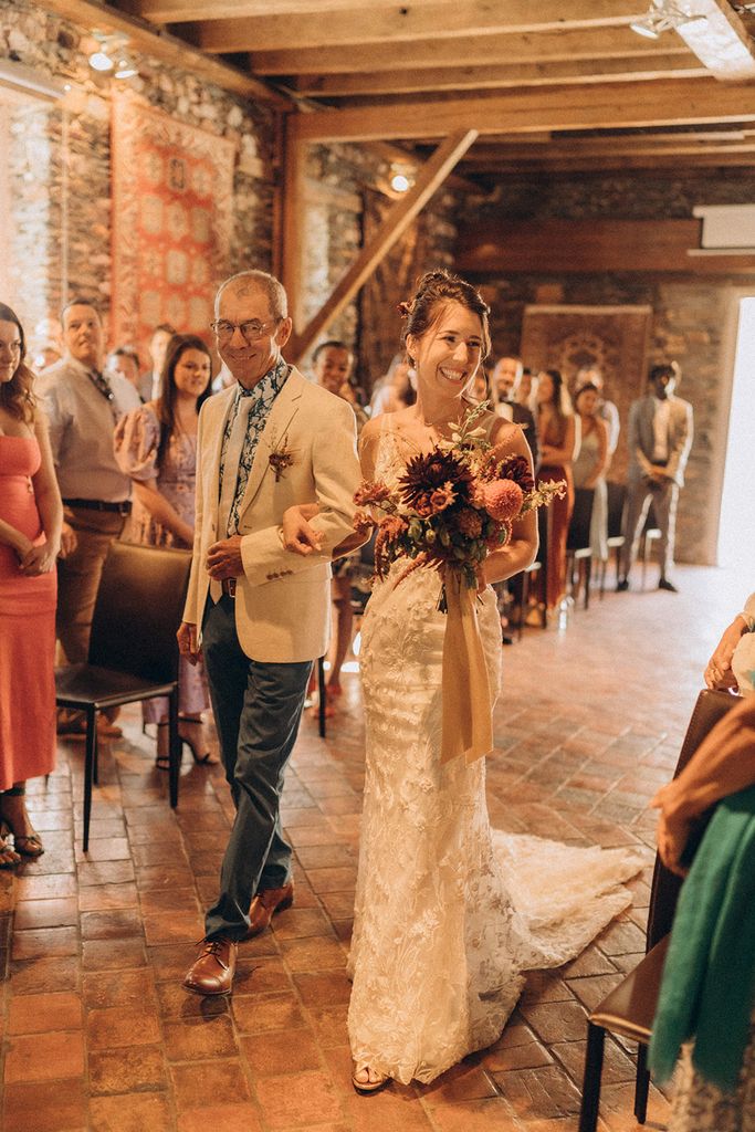 Gaëlle est française, Rhys est gallois, ils vivent aux UK et ont choisi de se dire oui au Manoir de la Jahotière. Un couple adorable et qui m’a accordé son entière confiance pour fleurir cette belle journée de fin d’été, aux couleurs profondes donnant un avant-goût d’automne.