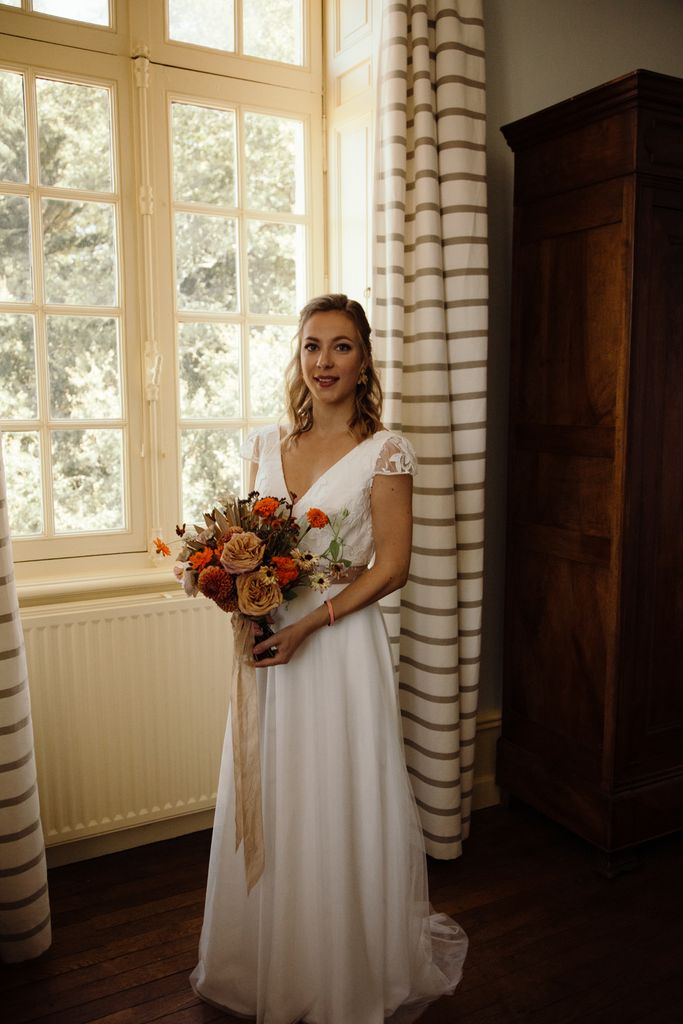 De la couleur! Quel bonheur de décorer le mariage d’Aurélie et Guillaume! Ce fût un vrai plaisir de travailler cette palette de couleurs vives: du terracotta à l’orange vif, des feuilles de palme en touches, et le tout composé de plein de beautés de chez mes producteurs locaux!