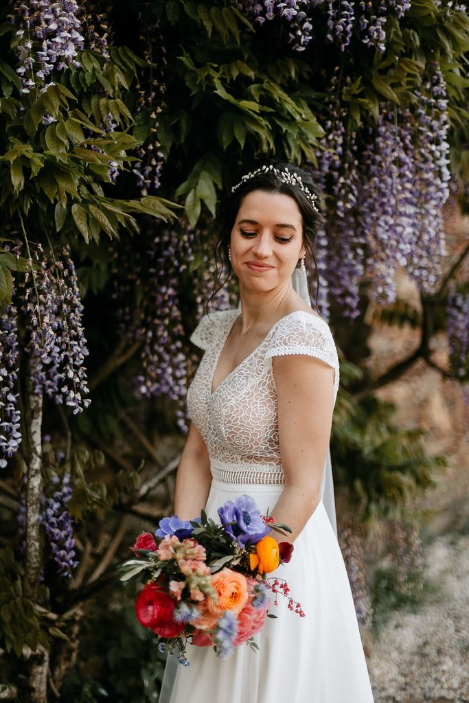 Pour le bouquet, Adeline souhaitait un bouquet rond, différent de ce que je propose d’habitude mais j’ai adoré lui créer ce petit concentré de couleurs!
